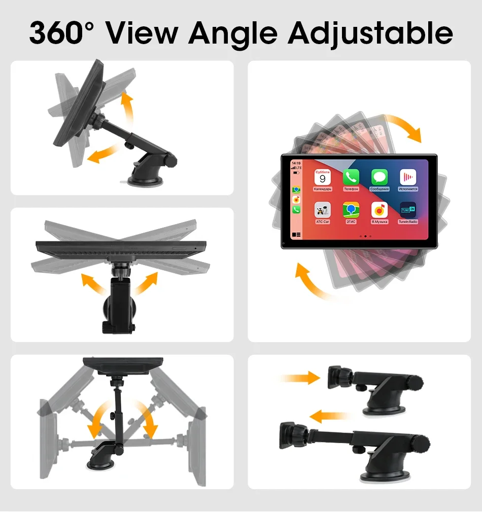 Изделие поставляется с двумя монтажными кронштейнами, которые можно прикрепить к лобовому стеклу с помощью присосок или разместить на приборной панели с помощью вертикальных кронштейнов.