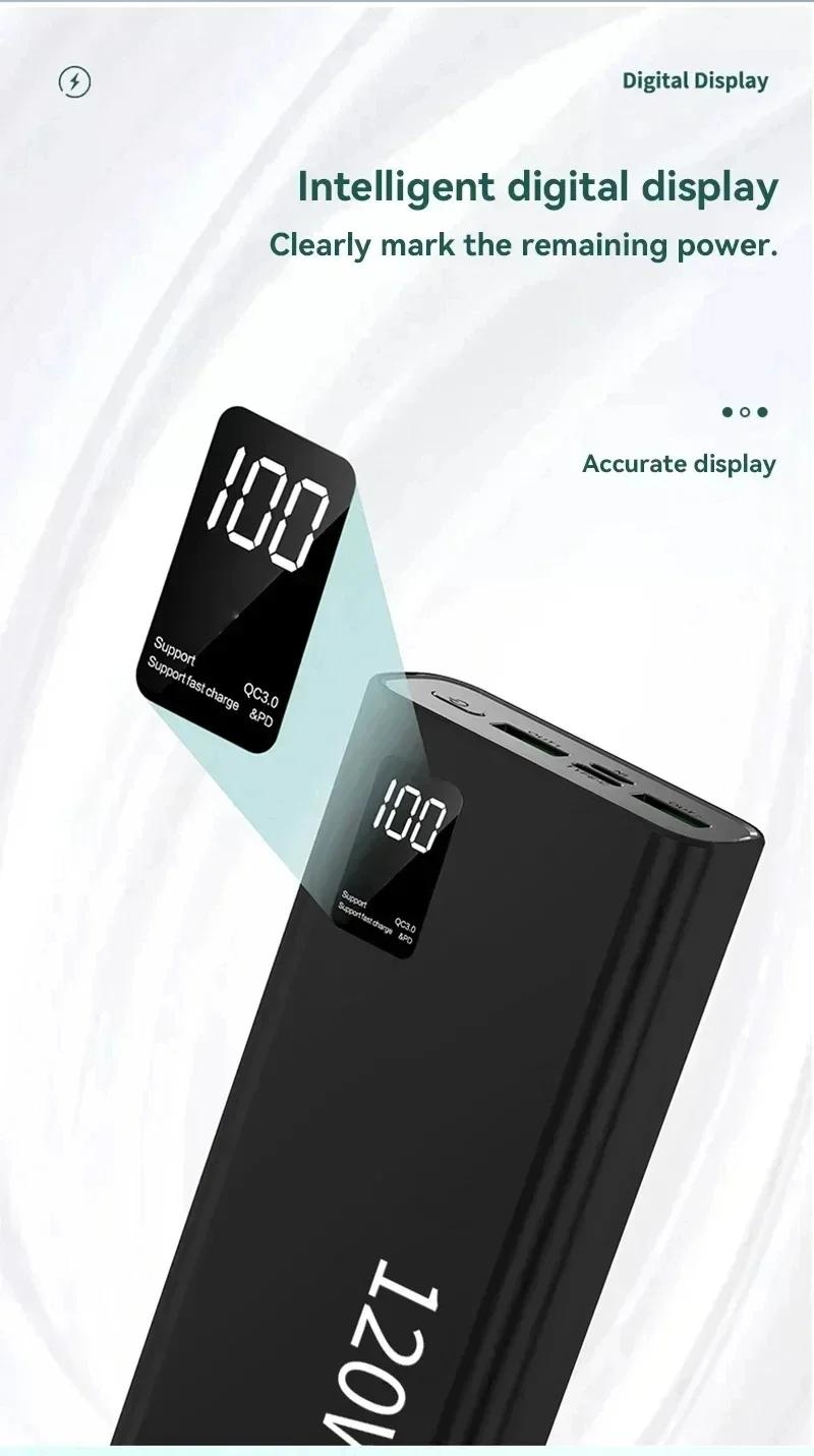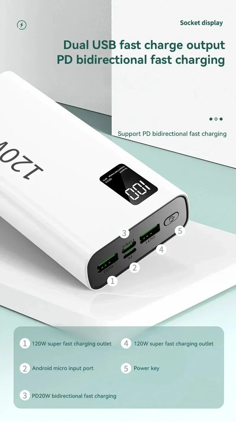 Супер быстрый внешний аккумулятор 120 Вт, 20000 мАч, зарядка аккумулятора большой емкости, портативный внешний аккумулятор для Samsung Huawei
