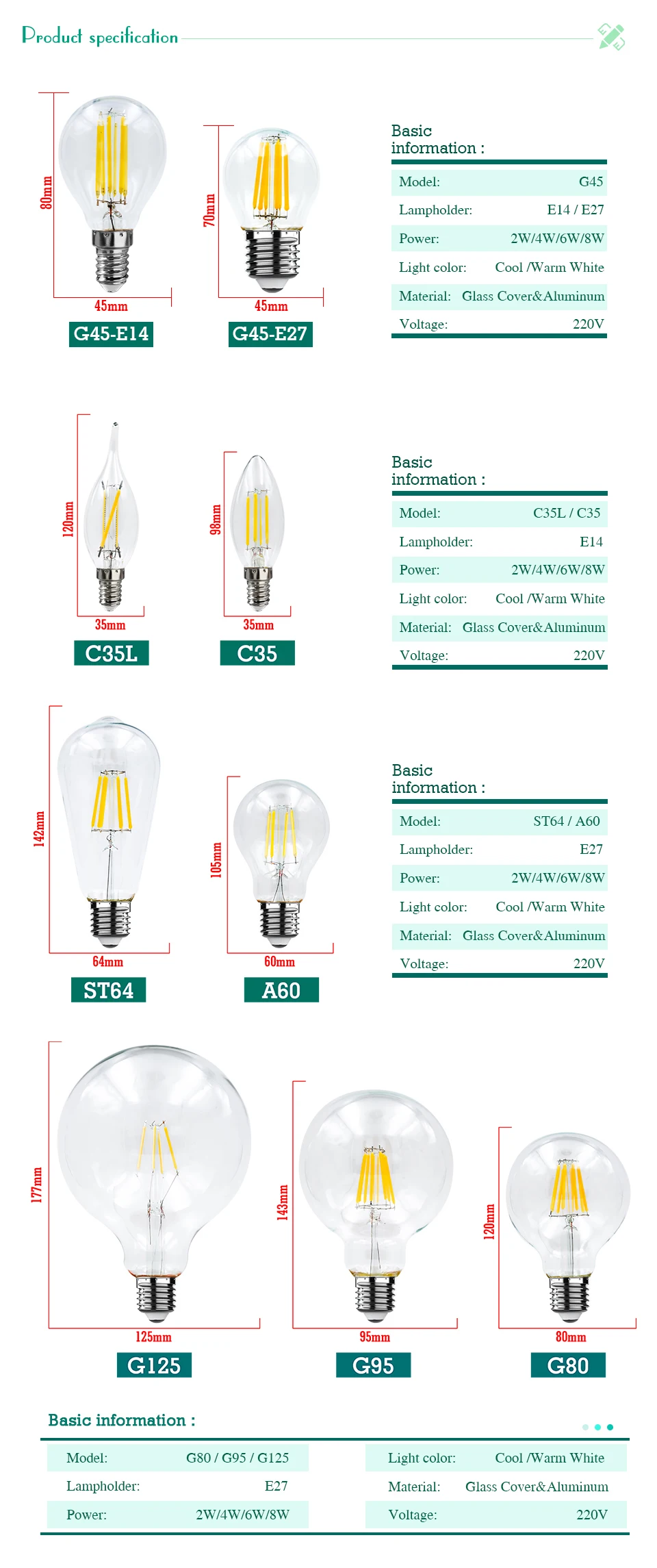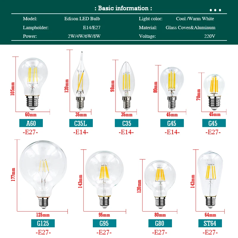 C35/C35L/A60/ST64/G45/G80/G95/G125 |