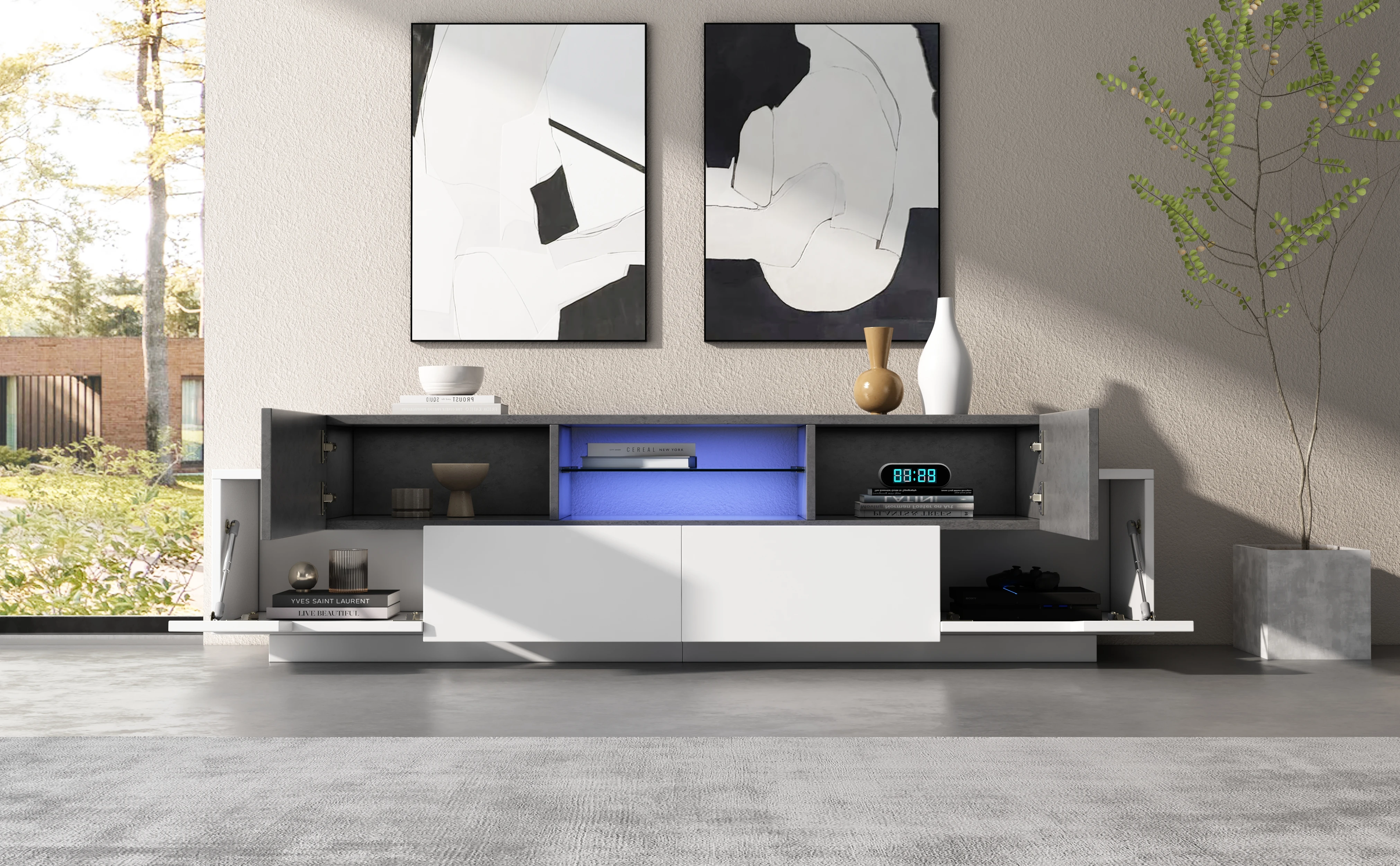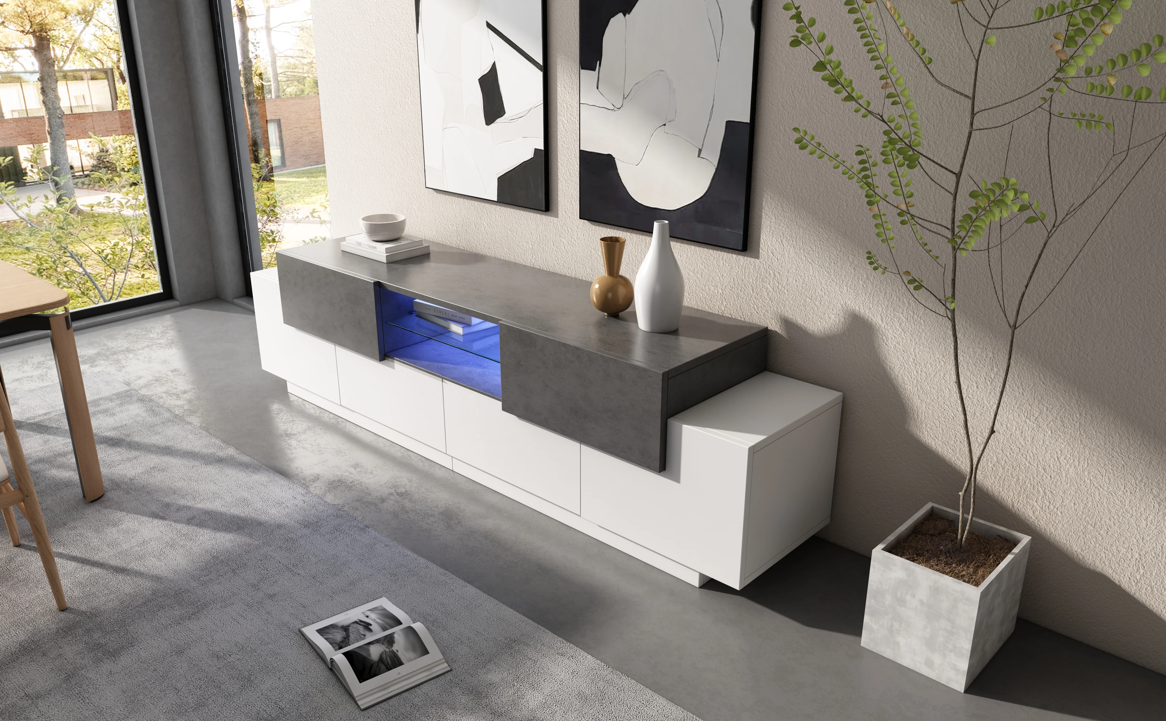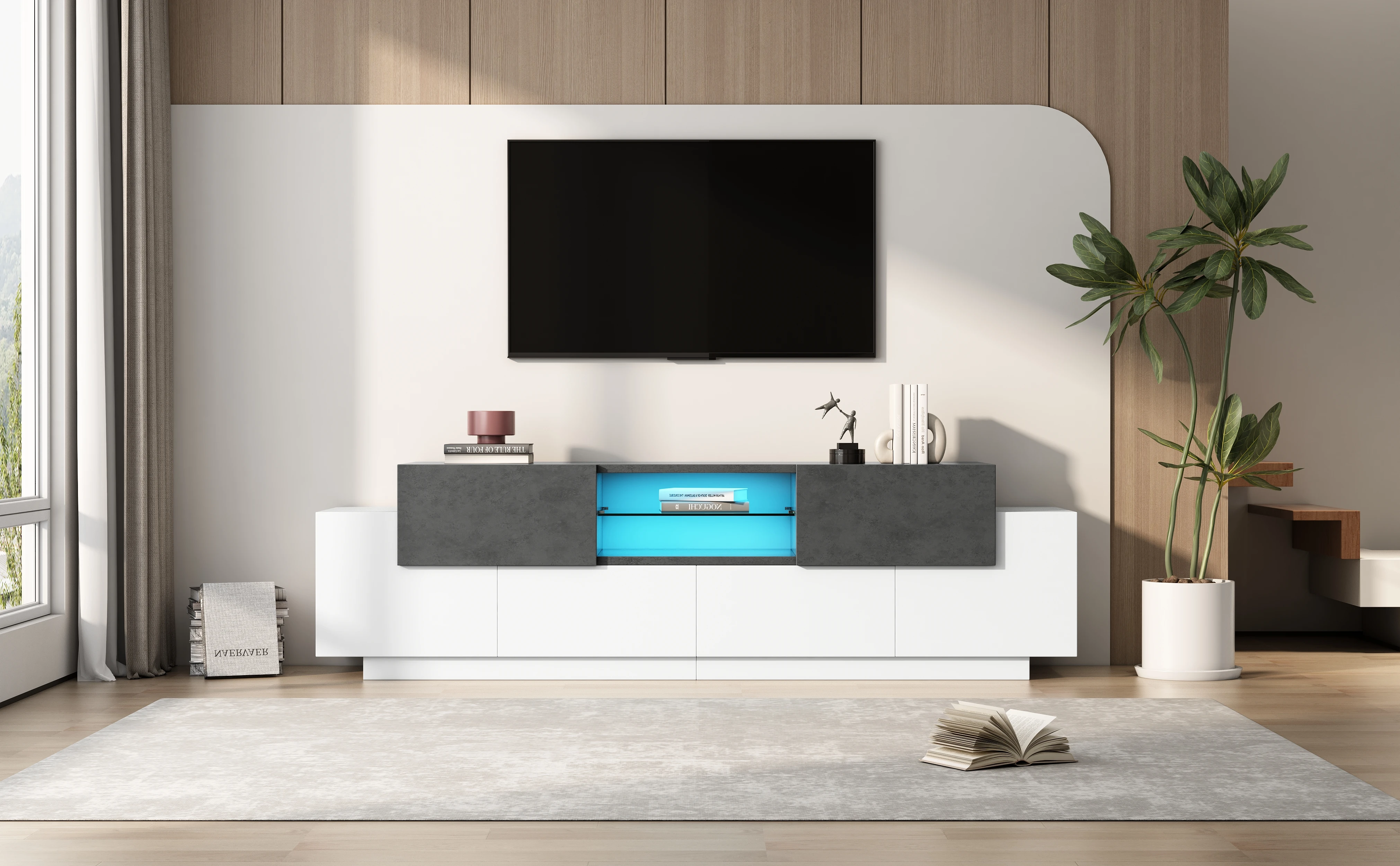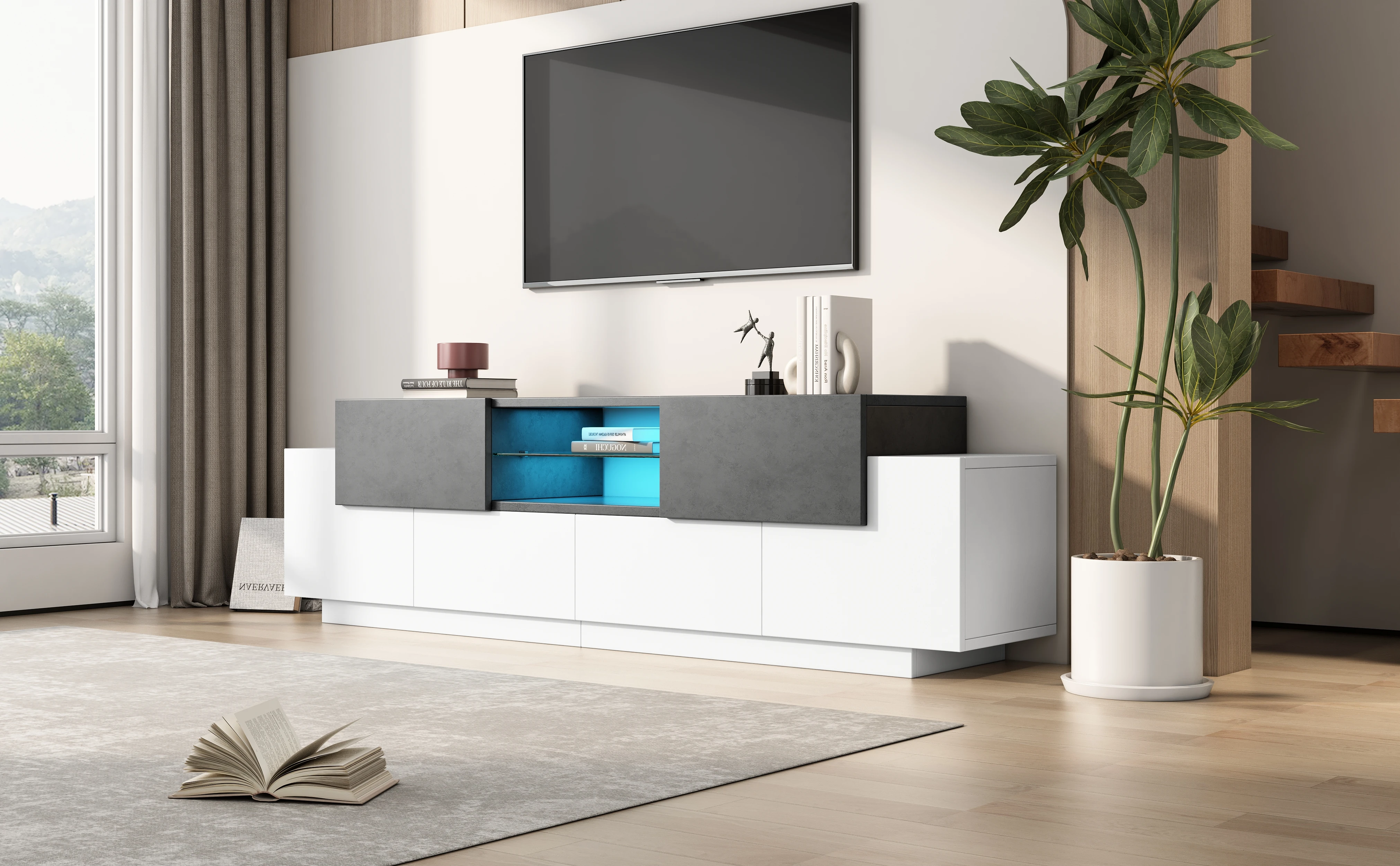 Светодиодный шкаф для телевизора, подставка для телевизора, низкая панель, современный развлекательный центр телевизора со стеклянными полками для гостиной, спальни, ТВ-консоль с