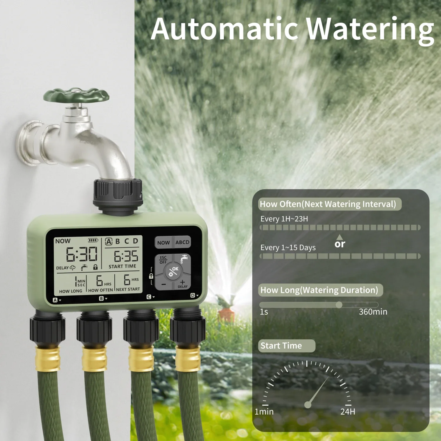 Таймер воды Diivoo, 4-зонный садовый программируемый автоматический таймер для орошения с задержкой дождя, ручной/автоматический режим полива для газона и двора