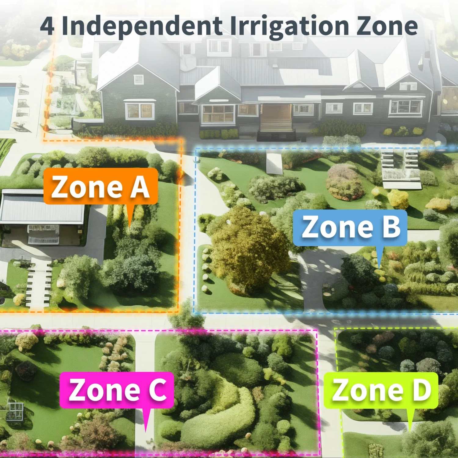 4-зонный таймер шланга облегчает планирование полива отдельно для разных областей.Вы можете установить время начала: продолжительность полива составляет 1–360 минут, частота полива каждые 1–3 часа и от каждого дня до 15 дней.Обеспечивает большую точность для различных потребностей в поливе.