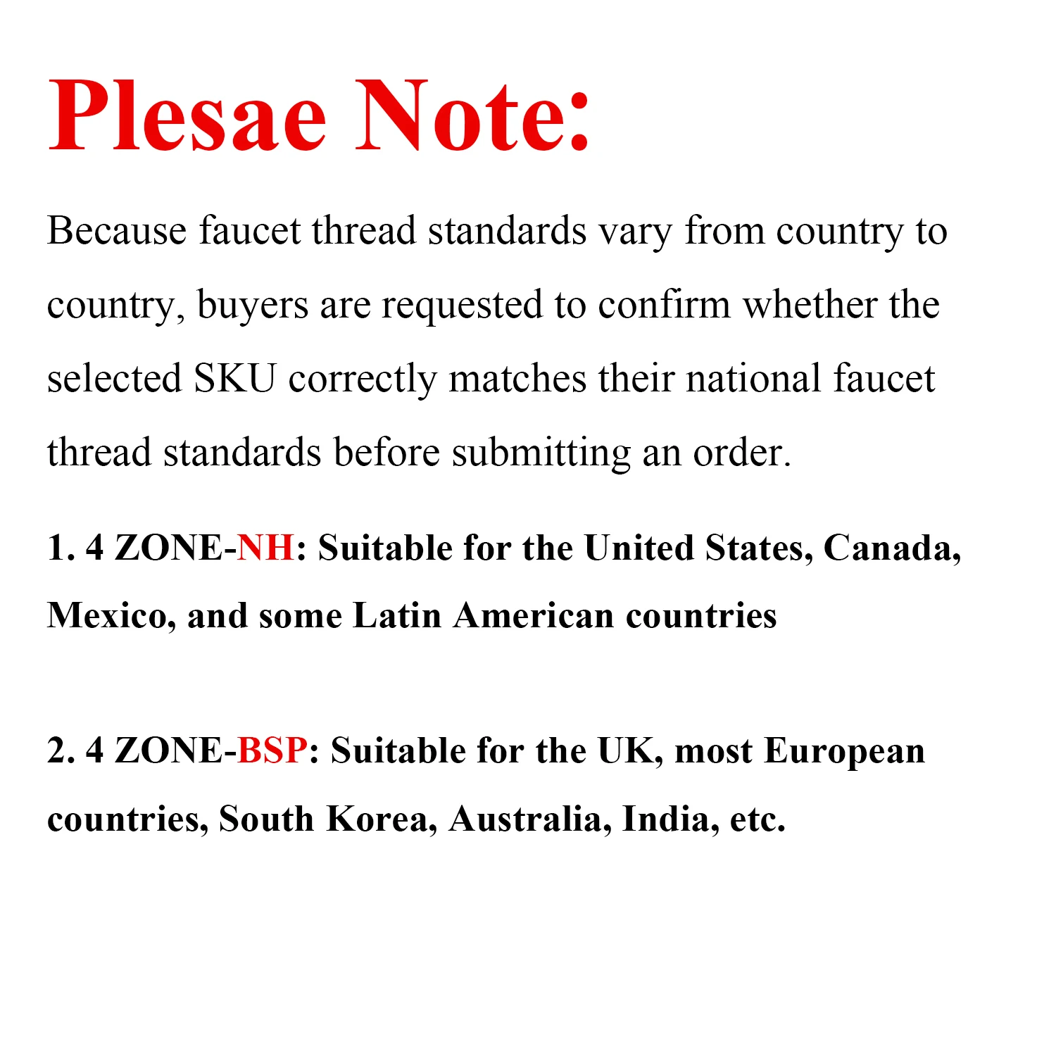 Полезные советы: поскольку стандарты резьбы смесителя различаются в зависимости от страны, перед отправкой заказа покупателям необходимо подтвердить, правильно ли выбранный артикул соответствует их национальным стандартам резьбы крана.