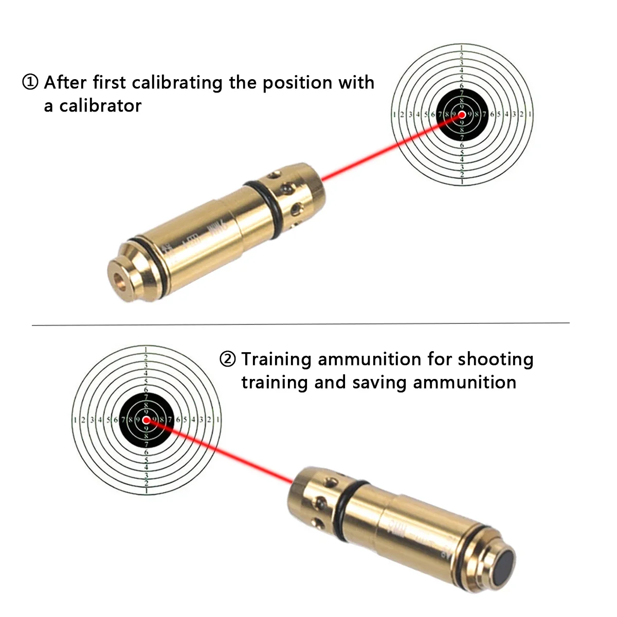 【Производительность】Наш тактический тренировочный лазерный картридж не нравится, прицел продолжает гореть, ярко-красный лазер класса 3 А (<5 мВт работает при длине волны 650 нм), когда активация при падении молотка или застрелки.Резиновая защелка в задней части картриджа защищает огнестрельное оружие под «Сухим огнем».