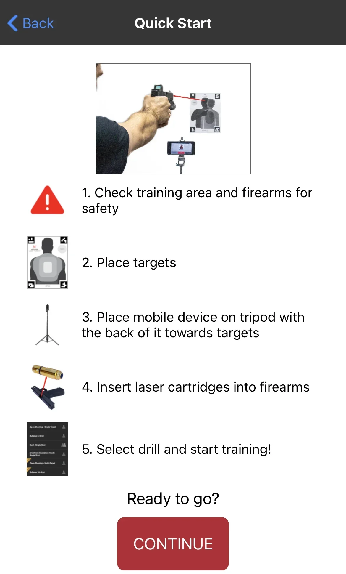 1.Проверьте зону обучения и огнестрельное оружие на безопасность.