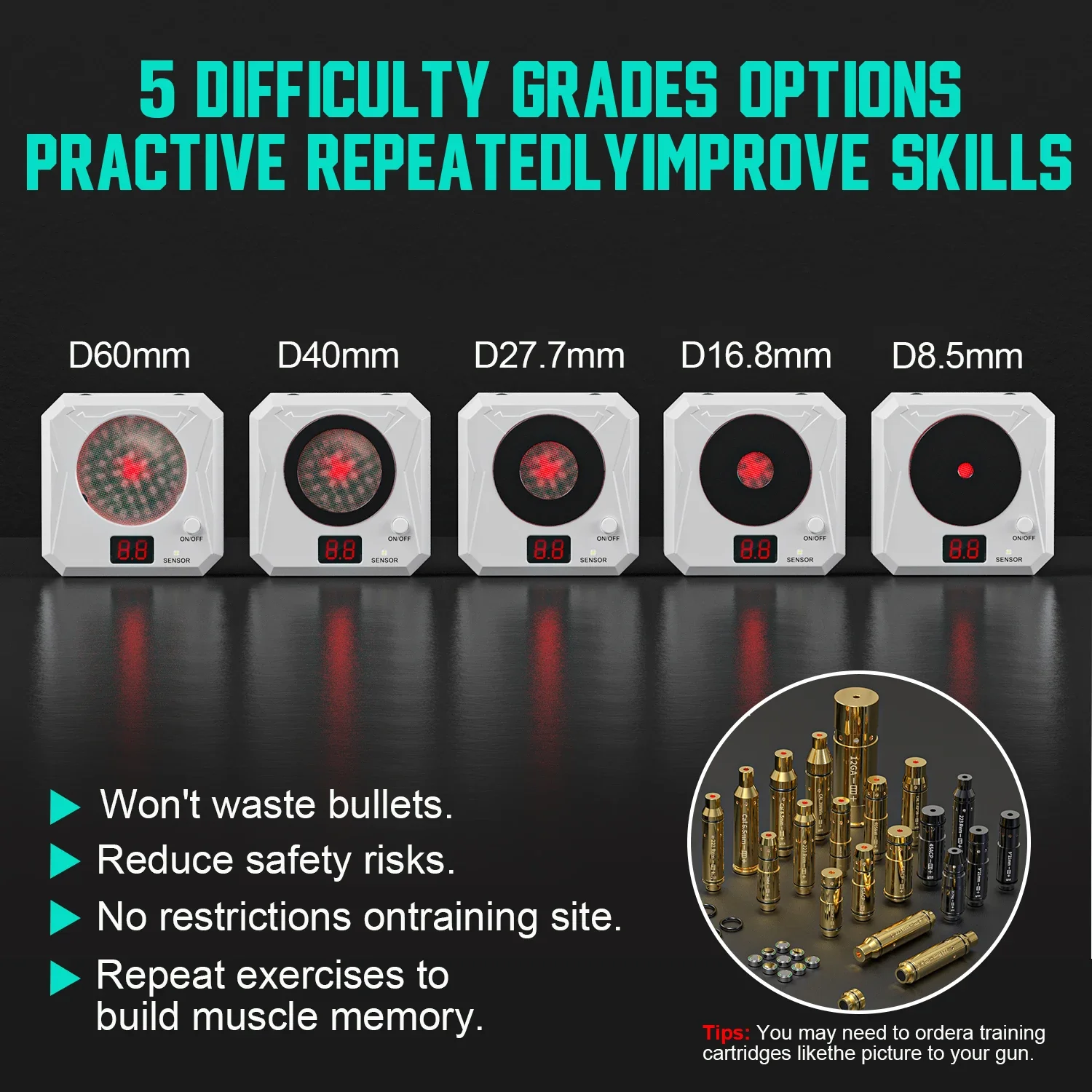【Экономьте деньги и время】переключатель можно использовать повторно более 3000 раз. Тренировка лазерной сухой пожарной мощностью 9 мм экономит затраты на боеприпасы и предотвращает появление траты боеприпасов.Вы можете тренироваться в любое время и в любом месте во время стрельбы до и обратно.