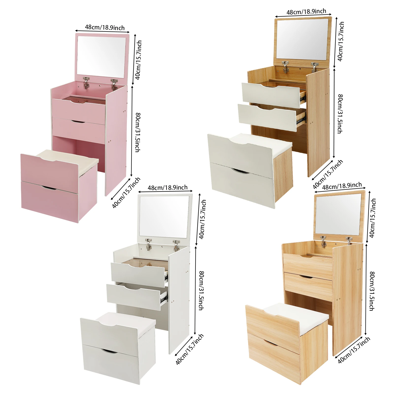 Туалетный столик для макияжа 40*48*80 см с 3 ящиками, туалетный столик со складным зеркалом, туалетный столик для спальни