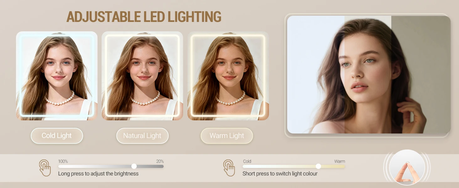 3. [Регулируемые светодиодные фонари] Белый туалетный столик с подсветкой оснащен регулируемым светодиодным освещением, обеспечивающим равномерное и мягкое освещение вашего лица.Он предлагает 3 режима освещения и регулирует яркость при длительном нажатии: яркость можно свободно переключать с теплого желтого, мягкого дневного белого на холодный белый, освещая каждую деталь вашего лица, гарантируя, что вы будете выглядеть наилучшим образом, независимо от того, наносите макияж или фотографируете.