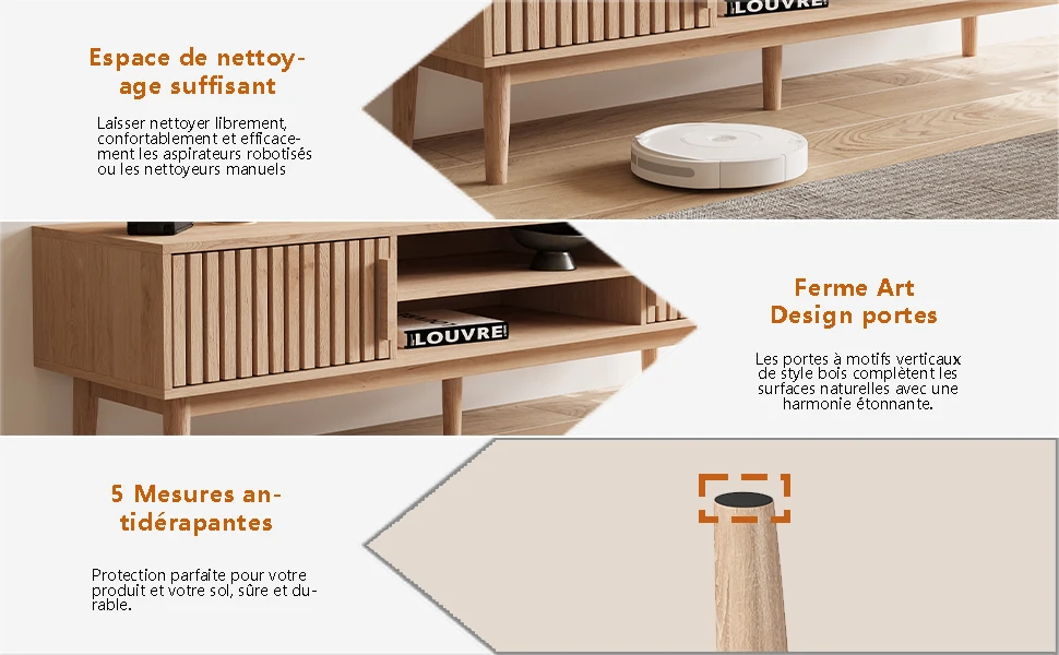 Открытое отделение позволяет легко разместить ресивер или игровую консоль, сохраняя при этом доступ к кабелям.Благодаря пяти прочным ножкам мебель отличается особой устойчивостью и обеспечивает оптимальный зазор от пола, что позволяет роботам-пылесосам без труда очищать пространство под ней.