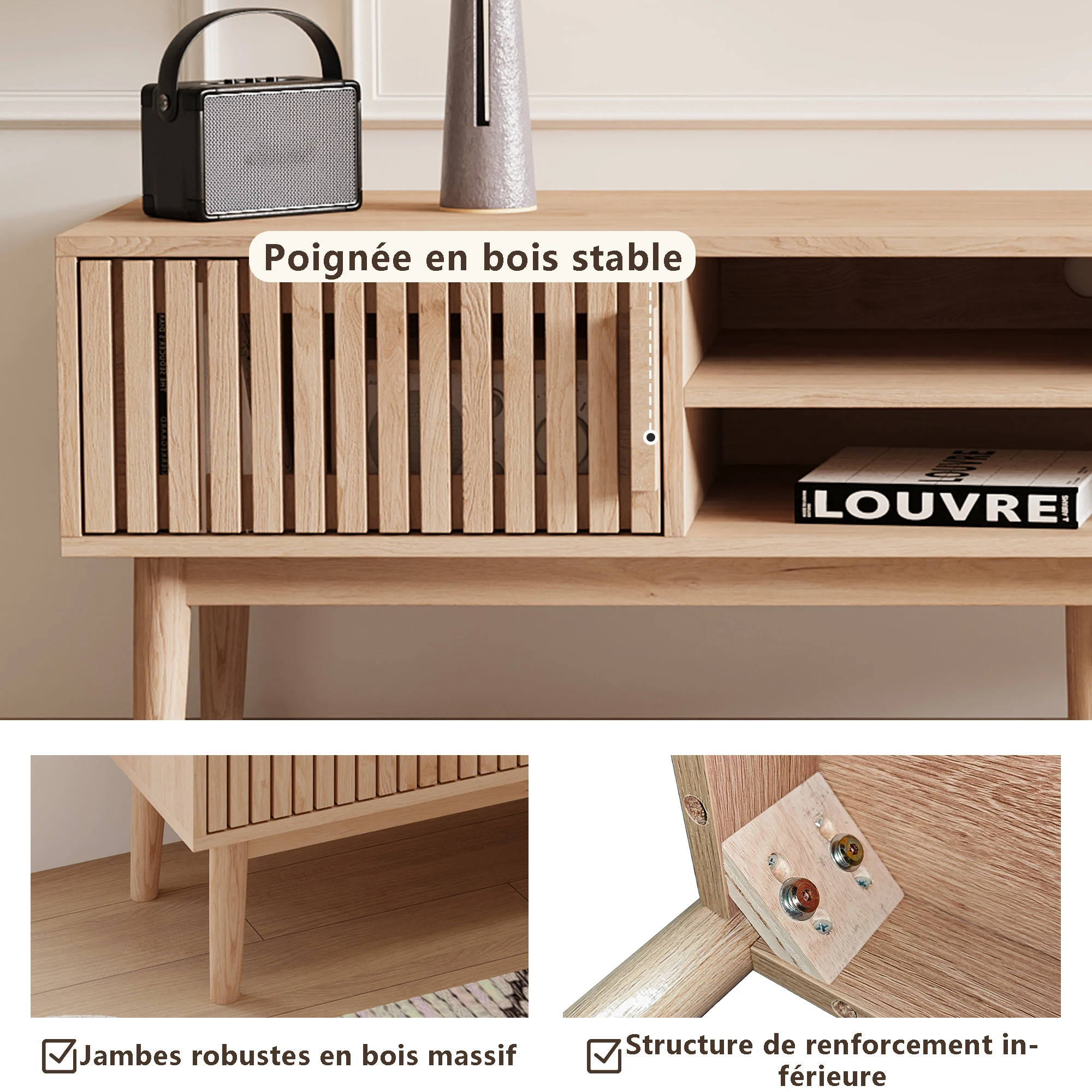 Будь то гостиная, столовая или спальня, эта мебель для телевизора гармонично вписывается в различные стили оформления и создает теплую и функциональную атмосферу.Мебель, которая идеально сочетает в себе дизайн, пространство для хранения и повседневную практичность.