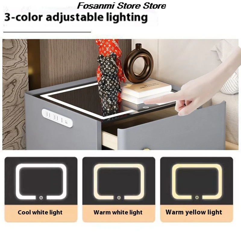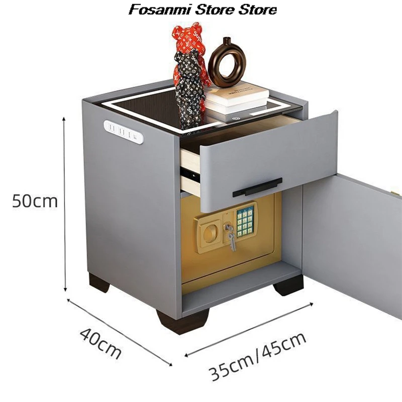 Тумбочка, умный сейф, дизайн «все в одном» с беспроводной зарядкой, многофункциональный ящик для хранения для спальни, домашнего использования, минималистичный стиль