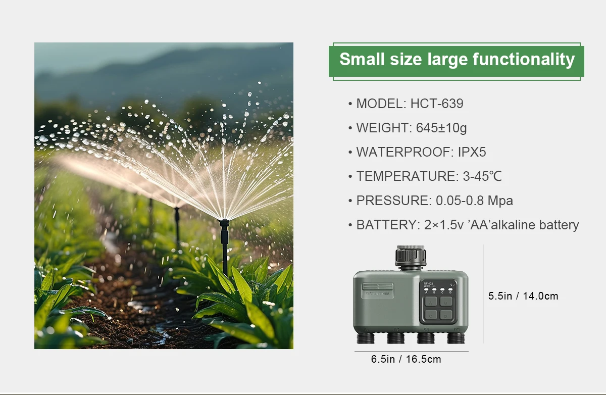 【Режим измененного орошения】Хотите ли вы автоматизировать полив?Вы можете запрограммировать таймер шланга с 4 выпускными отверстиями по расписанию автоматического полива в определенное время.В режиме полива по времени установите время начала, время работы и день полива (выберите с понедельника по воскресенье или каждый день или один цикл), чтобы освободить руки и автоматически поливать в указанное время.