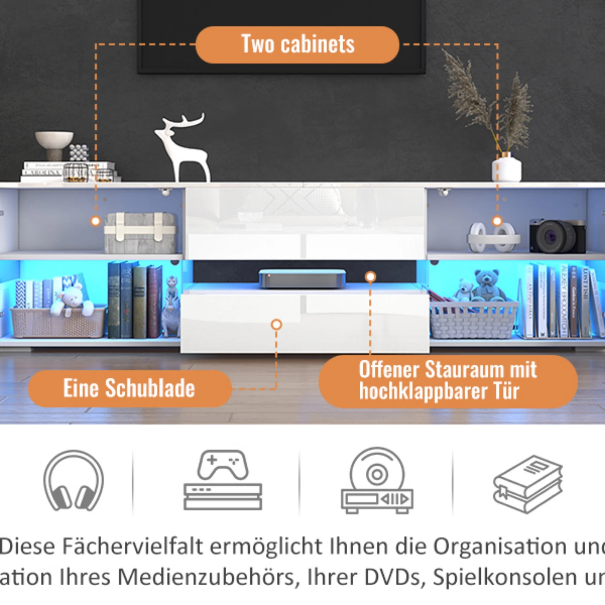 • СОВРЕМЕННЫЙ ДИЗАЙН: Белый глянцевый шкаф для телевизора со стильной светодиодной подсветкой создаст роскошную атмосферу в вашей гостиной.