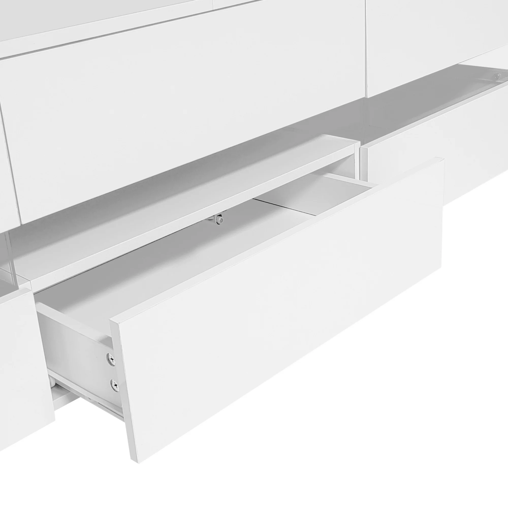 Передняя часть шкафа полностью глянцевая, что придает предмету мебели роскошный и современный вид.Этот шкаф для телевизора является не только функциональным предметом мебели, но и дизайном, который украсит вашу гостиную, сохраняя при этом порядок.Прочная конструкция шкафа обеспечивает стабильную установку вашей электроники и украшения, а стильное светодиодное освещение и глянцевый вид создают благородную атмосферу.