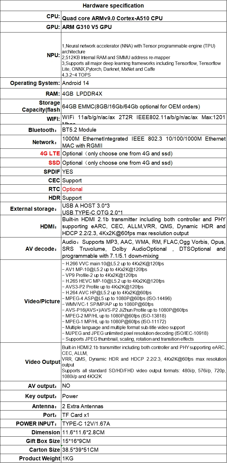 Процессор: Amlogic S905x5 четырехъядерный процессор ARMv9.0 Cortex-A510