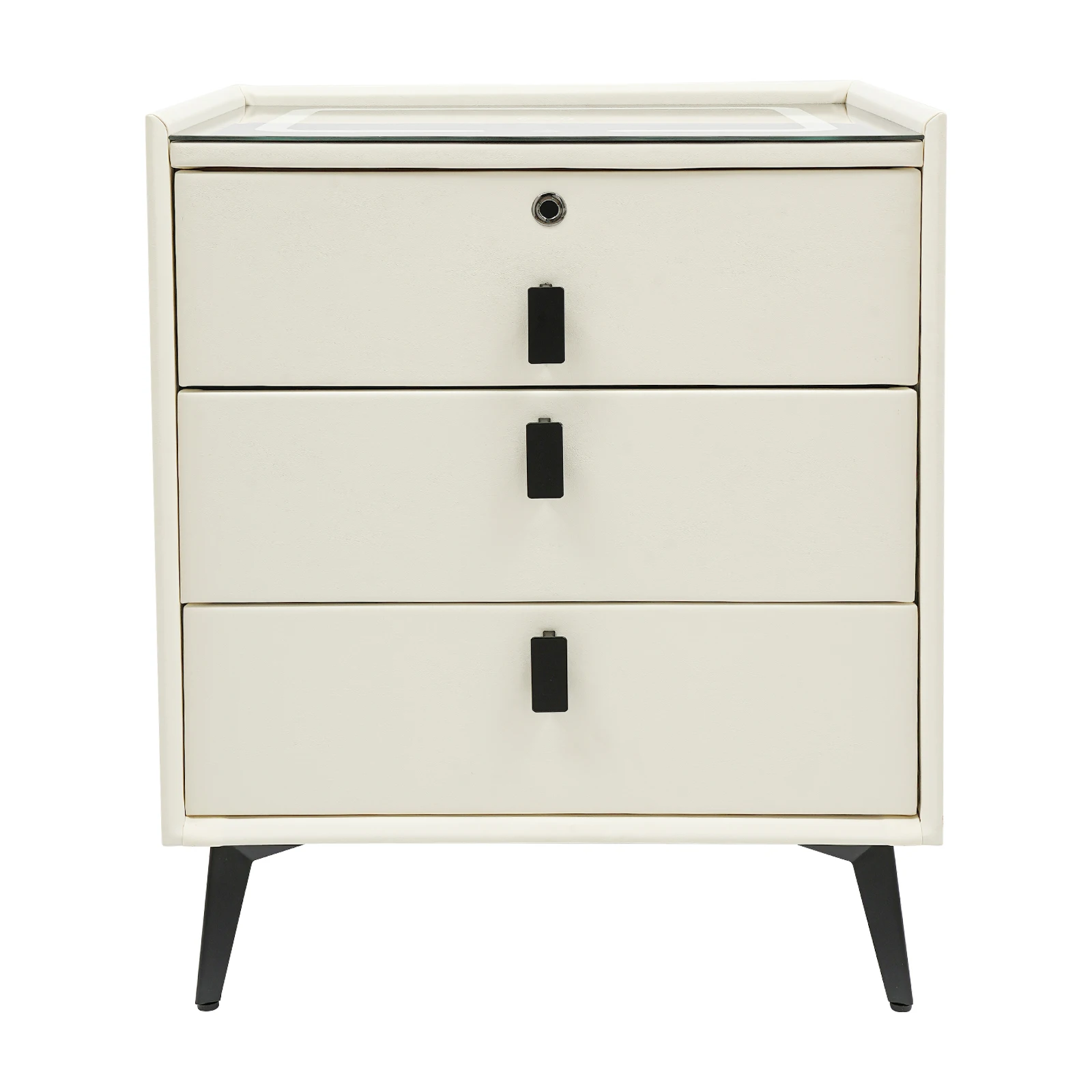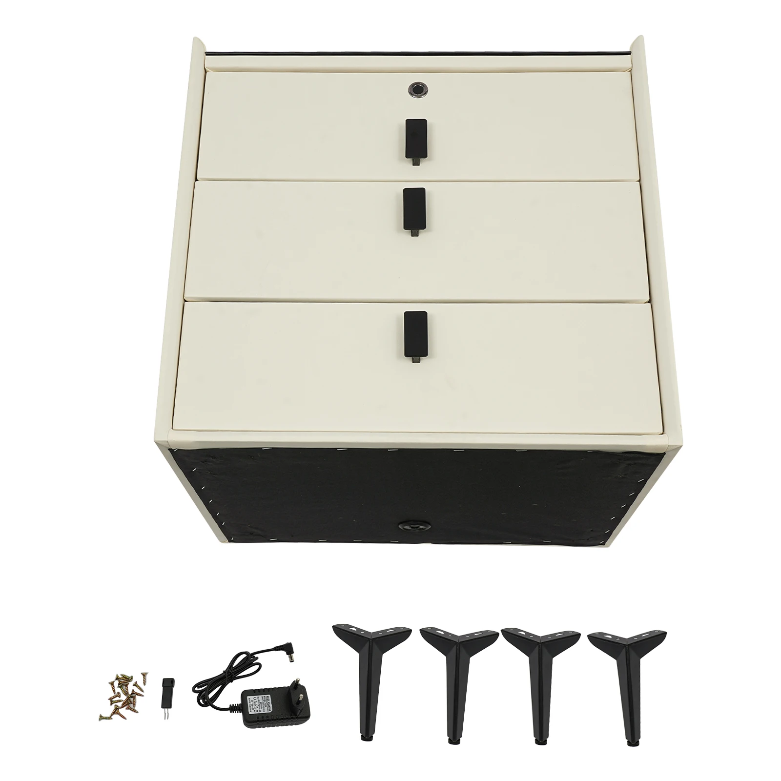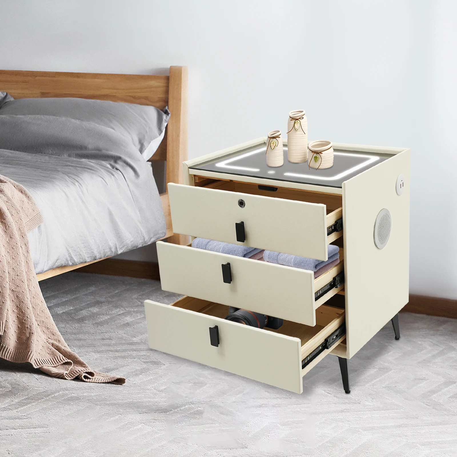 Умная прикроватная тумбочка с 3 ящиками, USB, трехцветный светодиодный порт для беспроводной зарядки, замок по отпечатку пальца, Bluetooth для спальни, гостиной