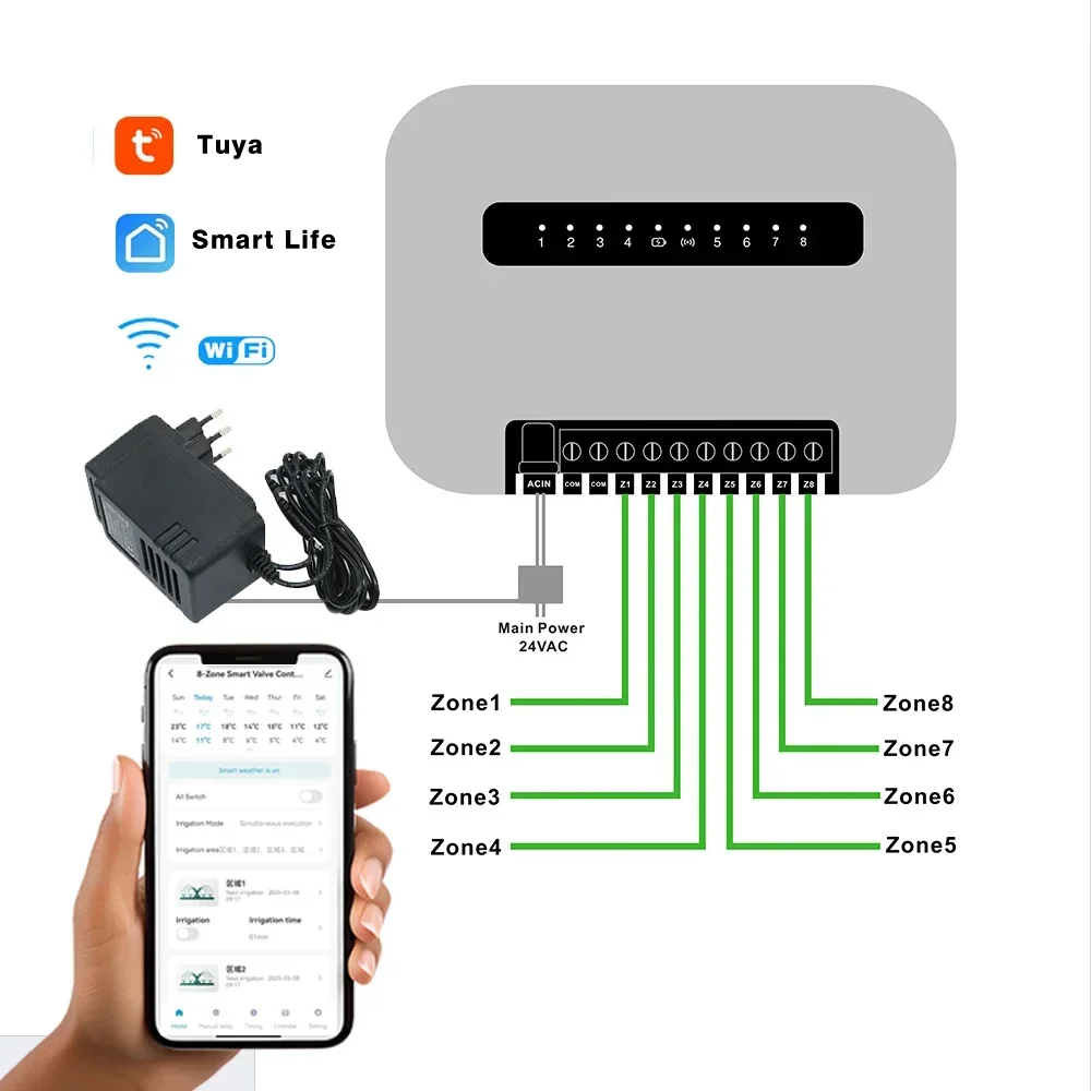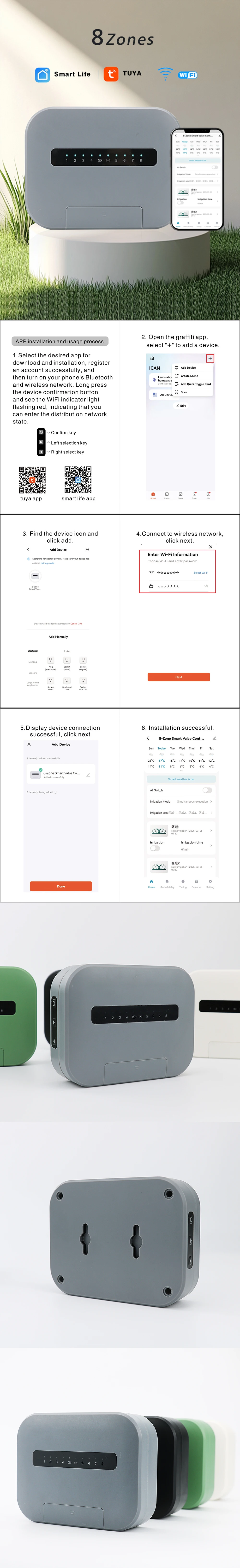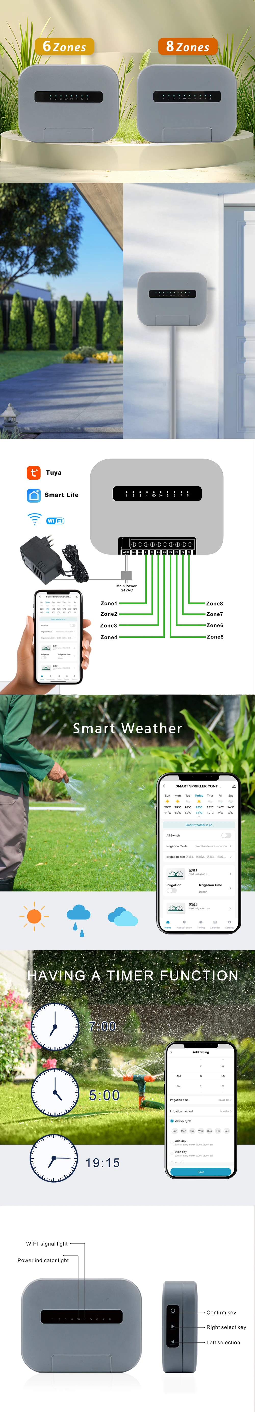 ✧ Интеллектуальный спринклерный контроллер 6/8-зон, обеспечивающий автоматическое орошение
