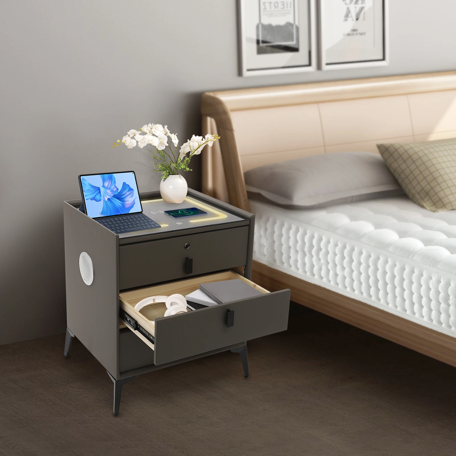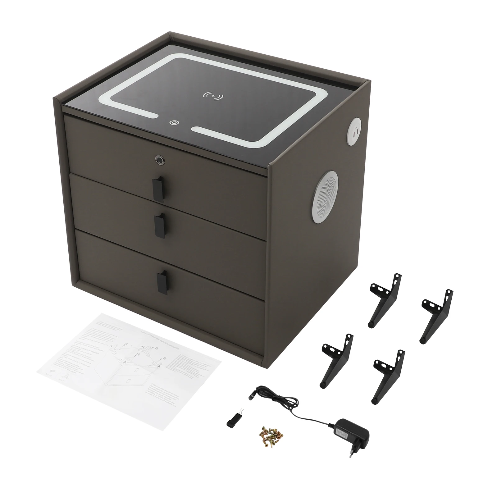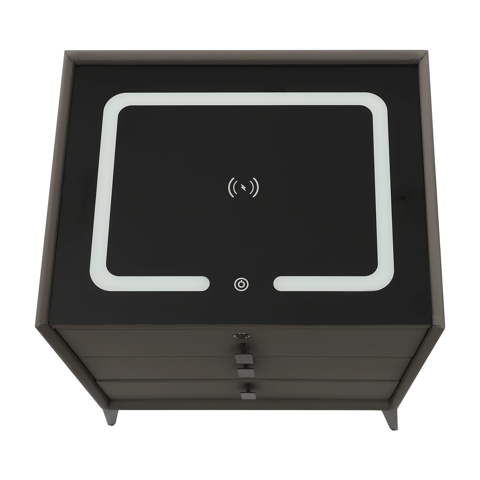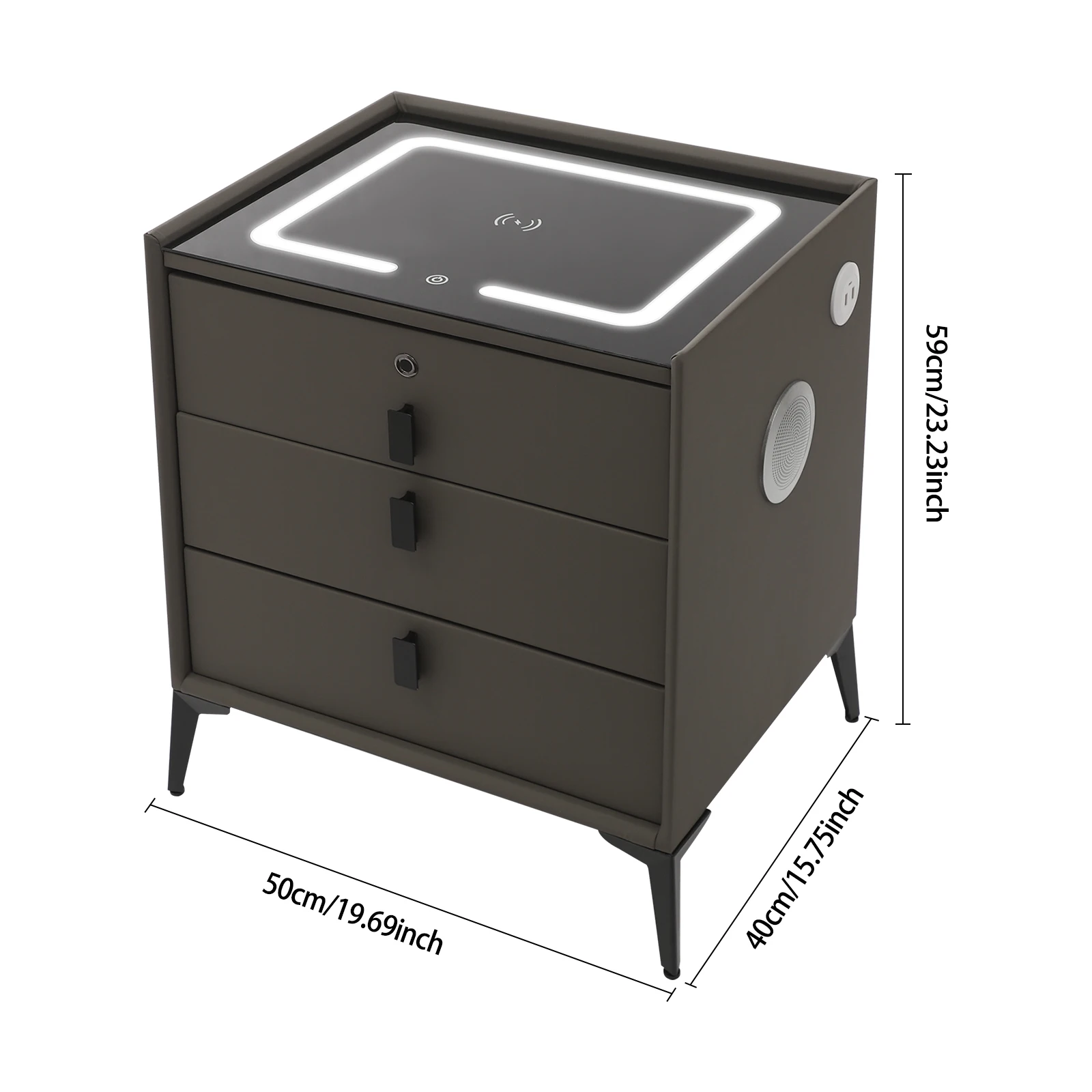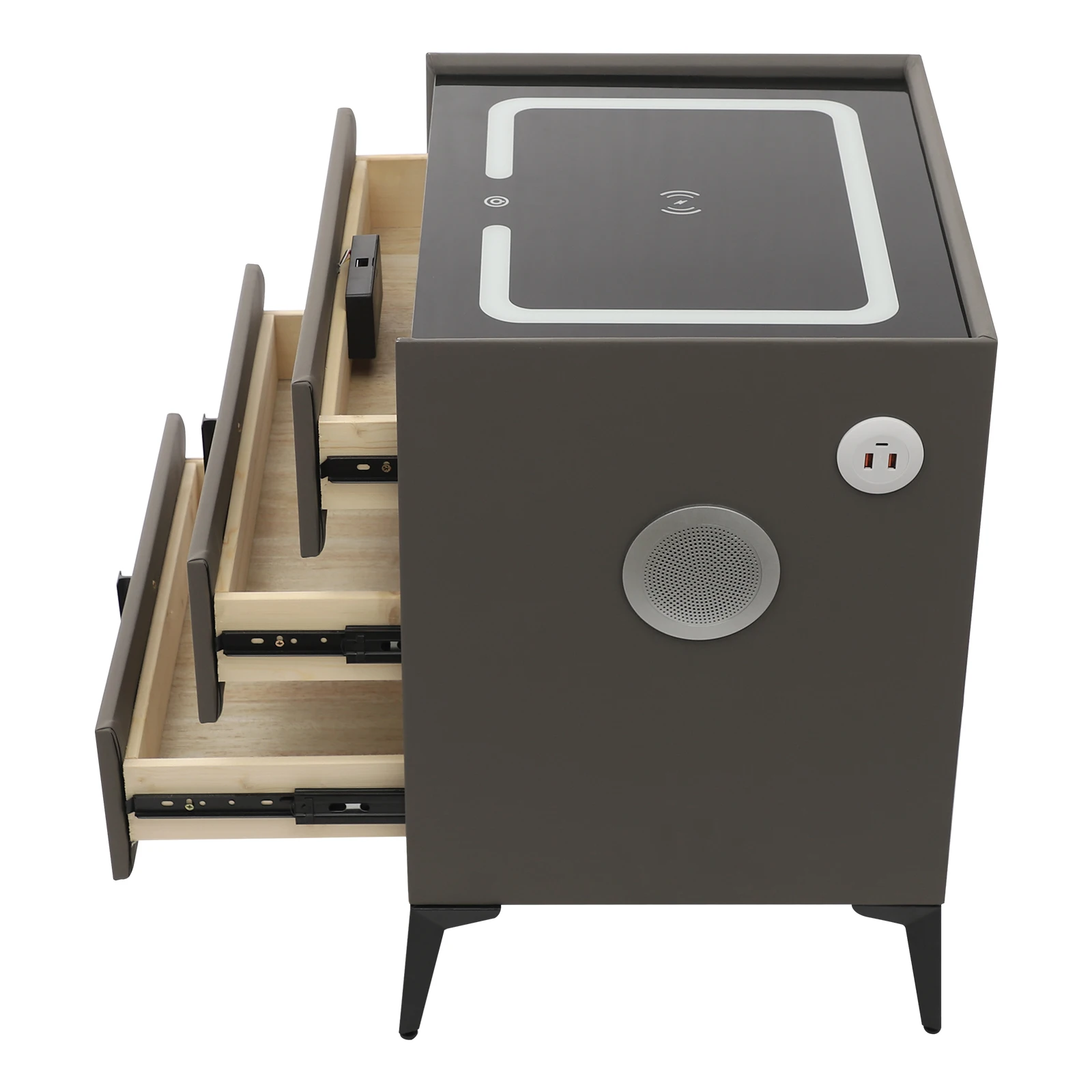 Умная тумбочка темно-серого цвета с 3 ящиками, прикроватная тумбочка со светодиодной подсветкой и распознаванием отпечатков пальцев для спальни, гостиной