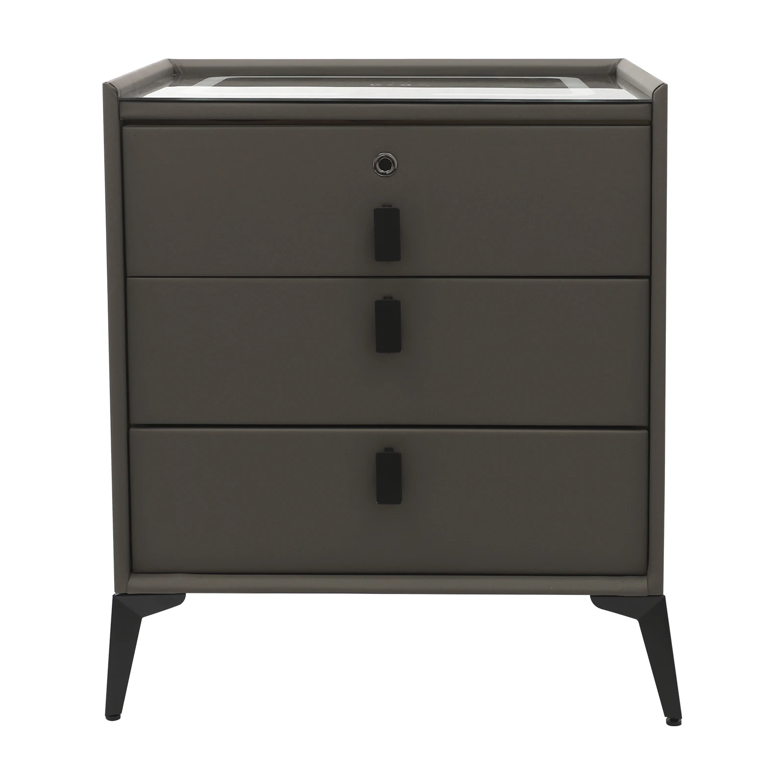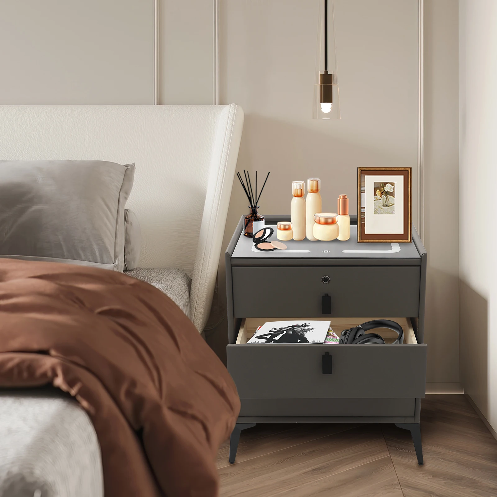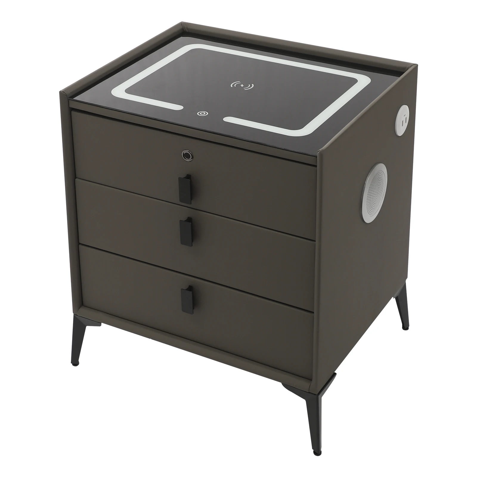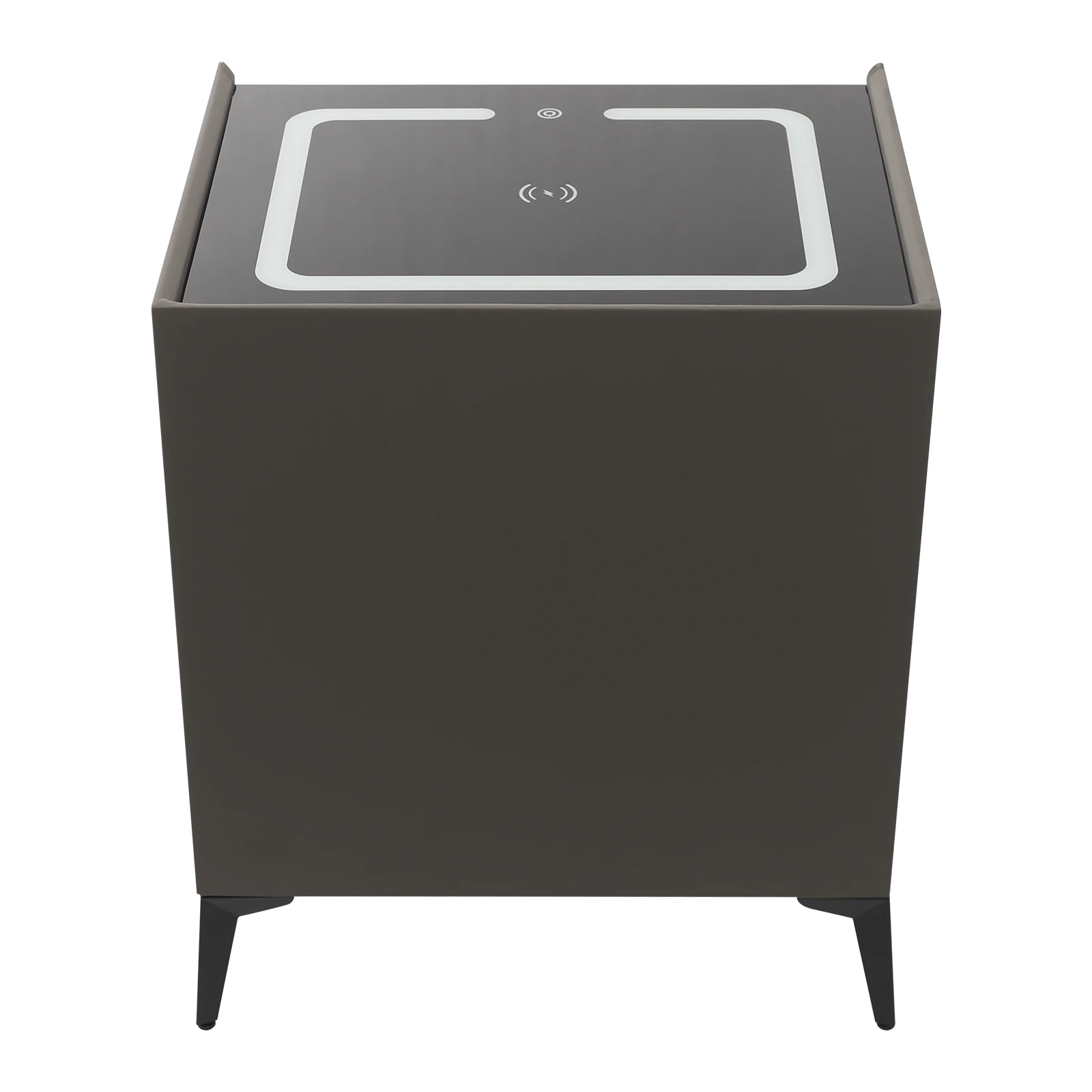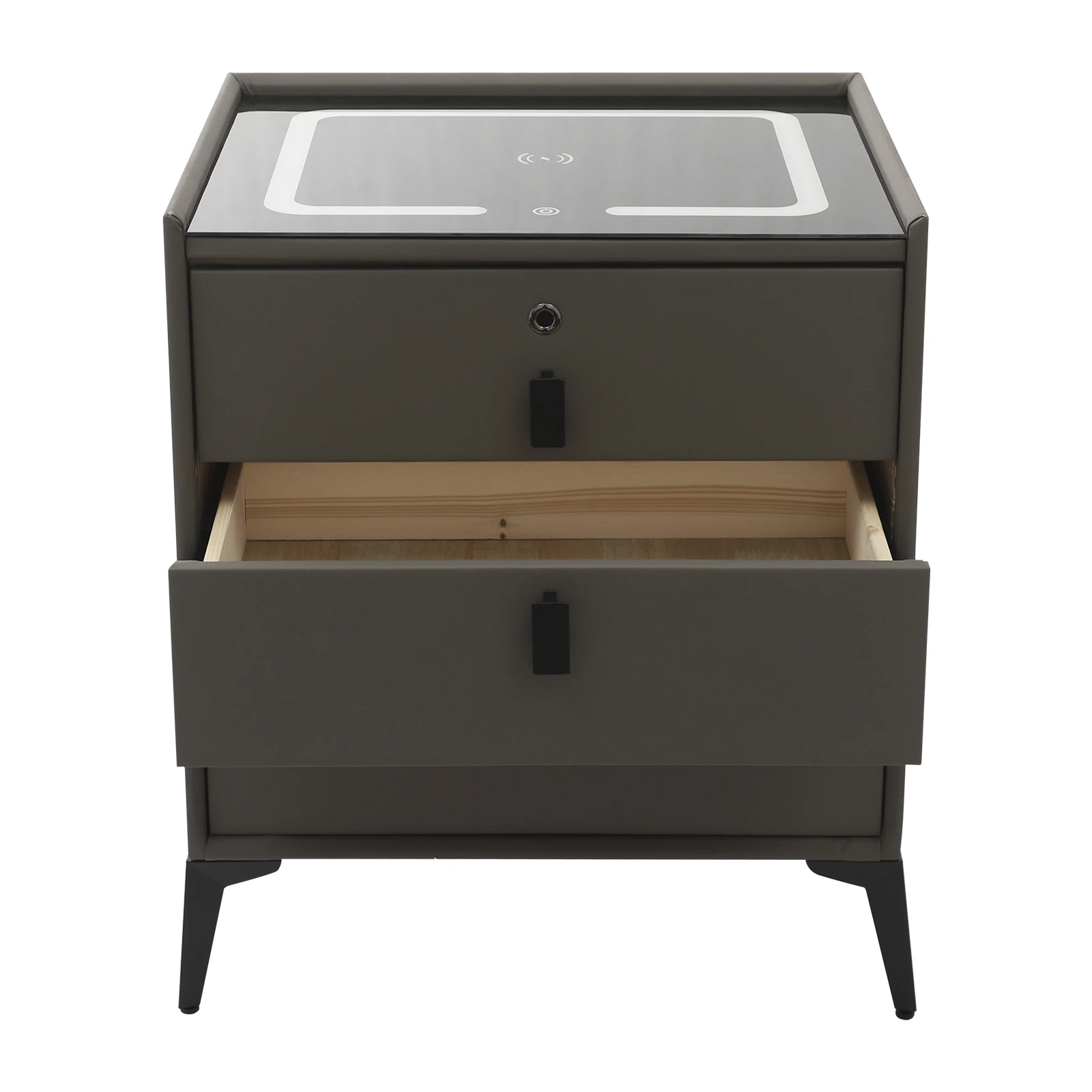 Умная тумбочка темно-серого цвета с 3 ящиками, прикроватная тумбочка со светодиодной подсветкой и распознаванием отпечатков пальцев для спальни, гостиной