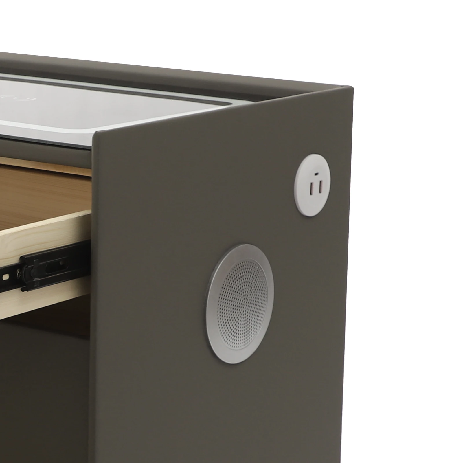 Умная жизнь:Область разблокировки отпечатком пальца обеспечивает 360°.° распознавание отпечатков пальцев для разблокировки ящиков, что дает вам душевное спокойствие при хранении ваших личных ценностей.Звук Bluetooth позволяет быстро подключиться к Bluetooth вашего телефона и слушать на досуге, создавая ваш личный театр.