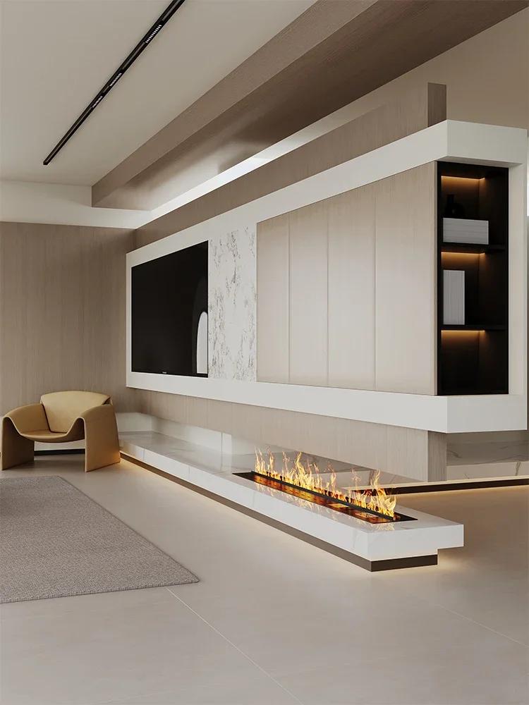 Создайте безопасную, экологичную и эстетичную атмосферу с помощью нашего камина с водяным паром — испытайте красоту потрескающегося огня без каких-либо традиционных рисков.