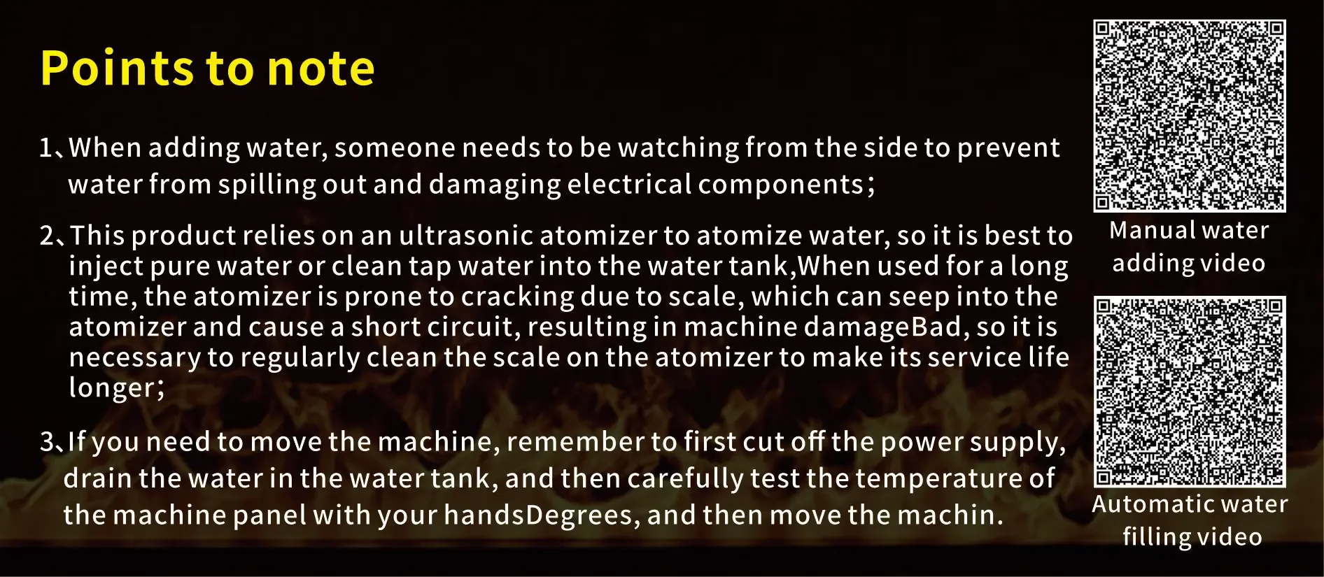 4.Чтобы продлить срок службы горелки, рекомендуется использовать очищенную воду, в случае попадания грязи воды в камин не сможет работать после длительного использования.