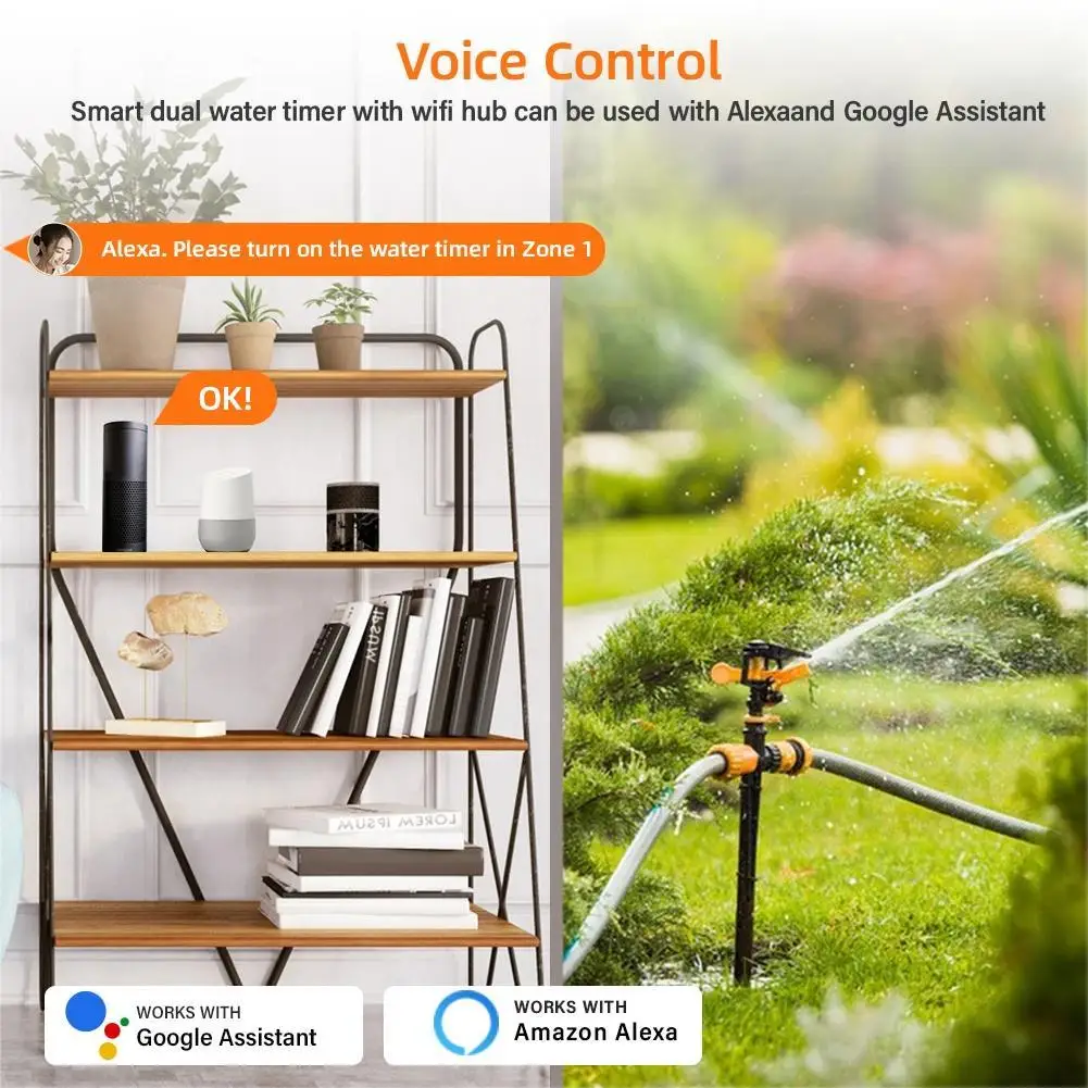 Умный таймер воды Wi-Fi, автоматический контроллер клапана для орошения садовой фермы, совместимый с Alexa и Google Assistant