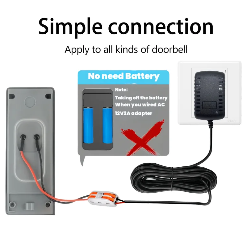 Проводной адаптер постоянного тока 12 В/2 А для трансформатора дверного звонка