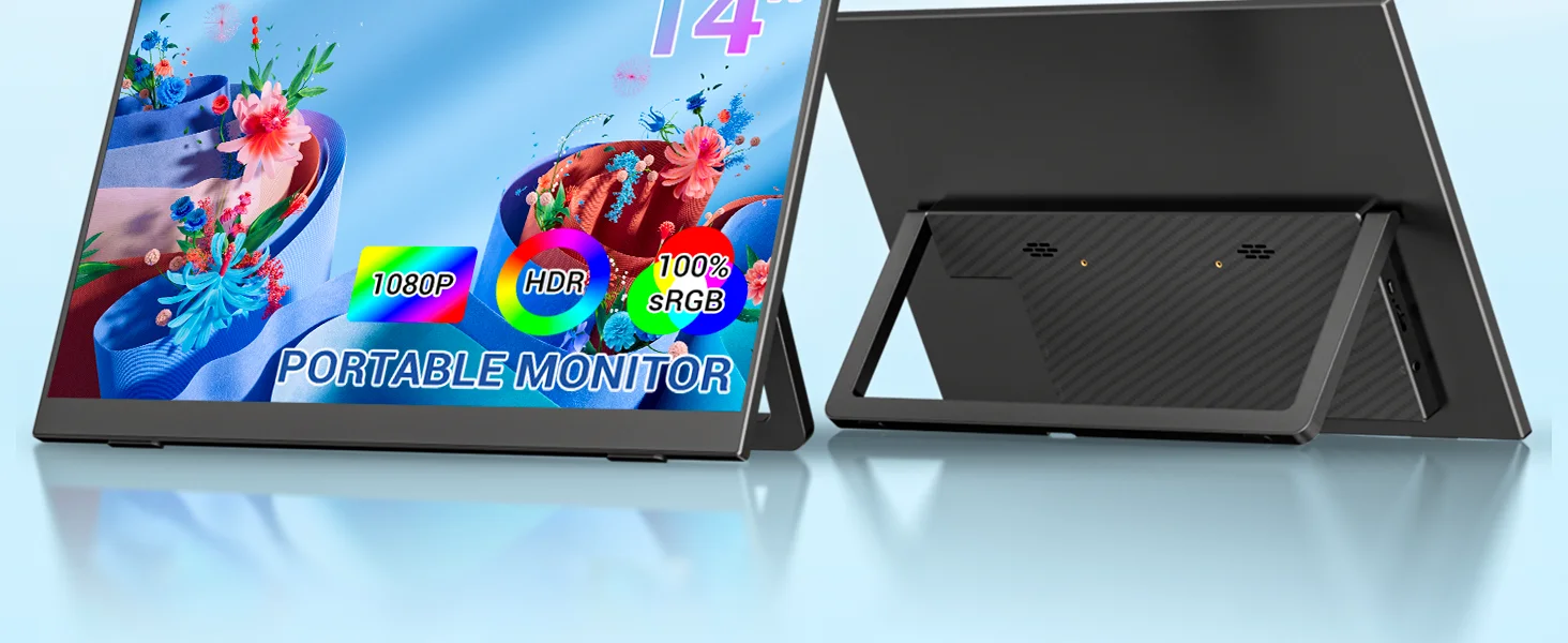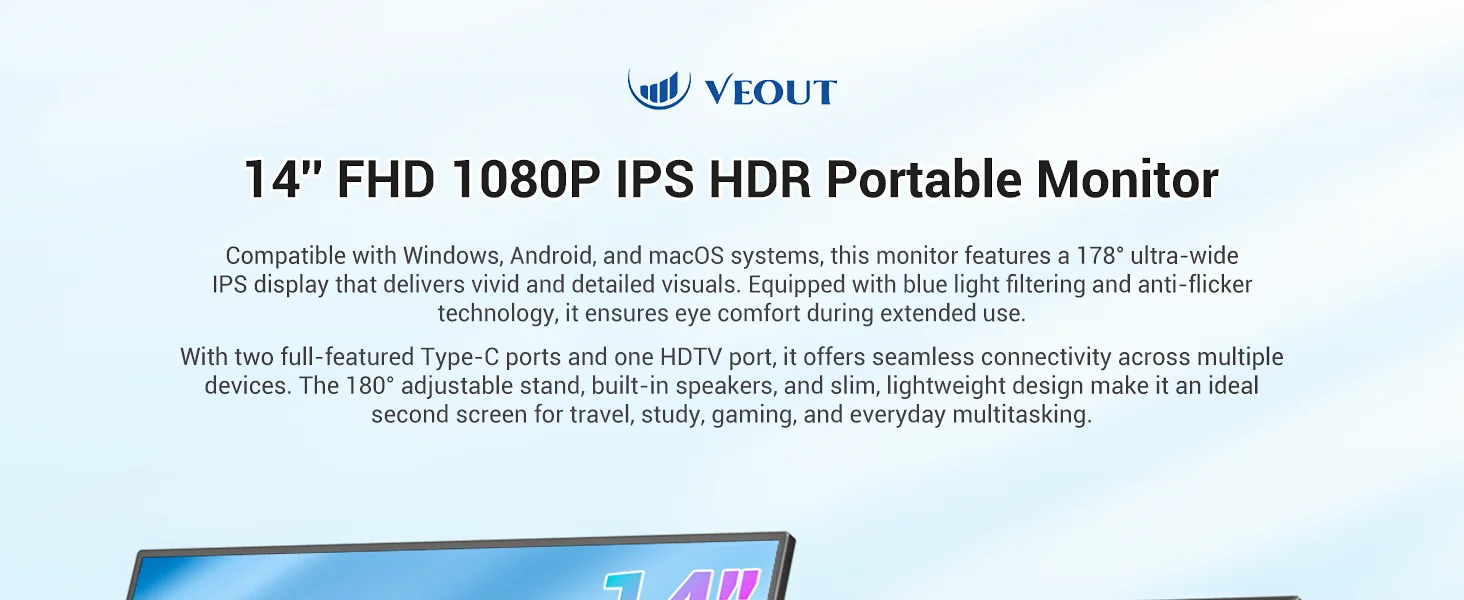 VEOUT 14-дюймовый портативный монитор Full HD с разрешением 1080P IPS-дисплей с подключением USB-C Регулируемая подставка для игр и потоковой передачи