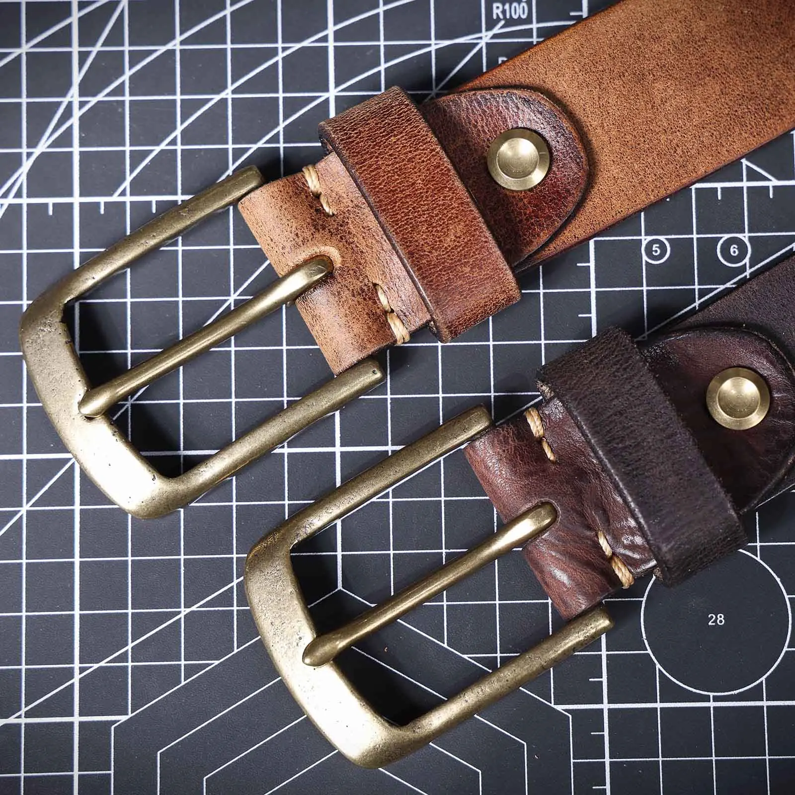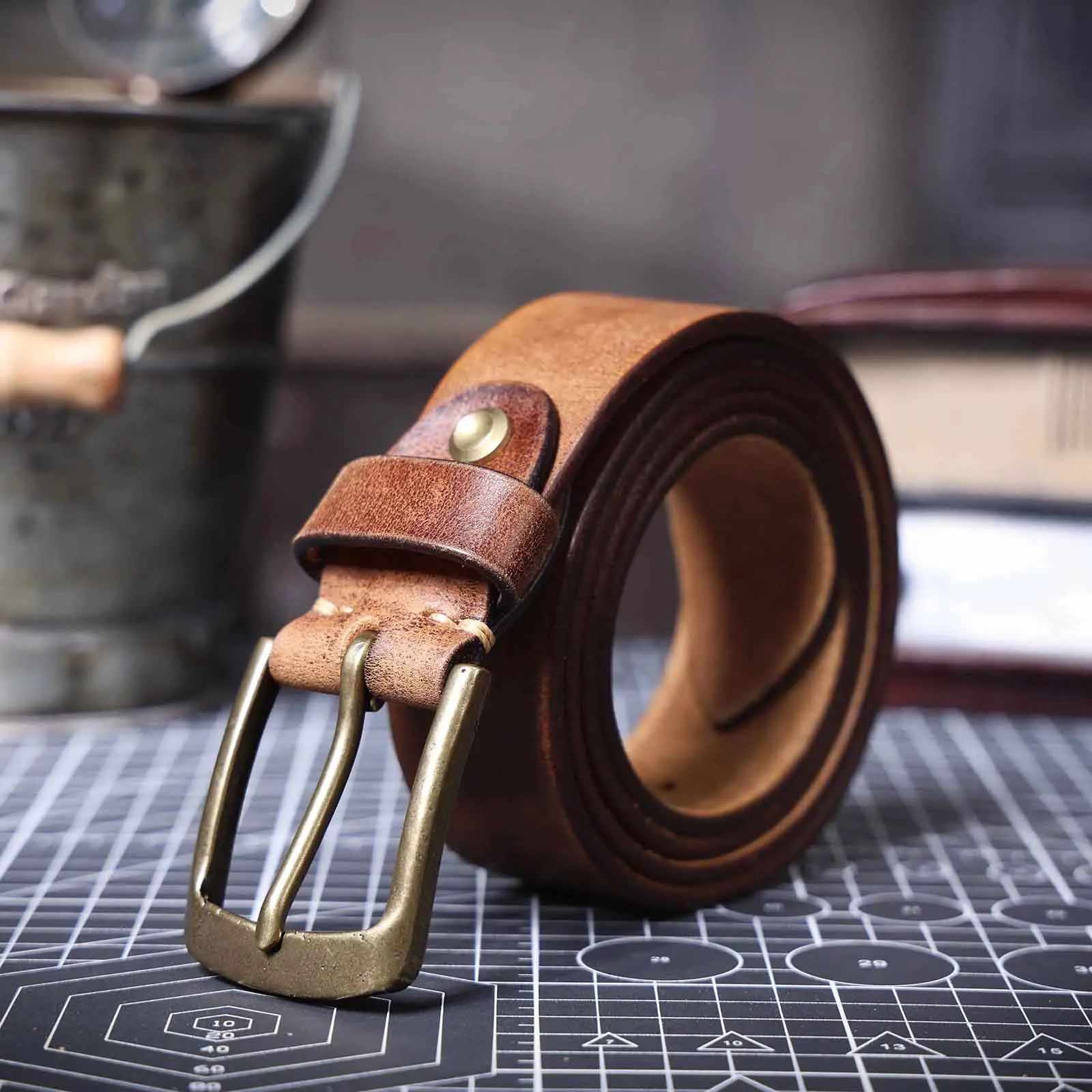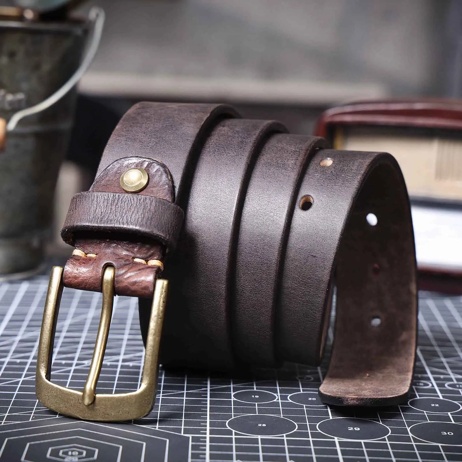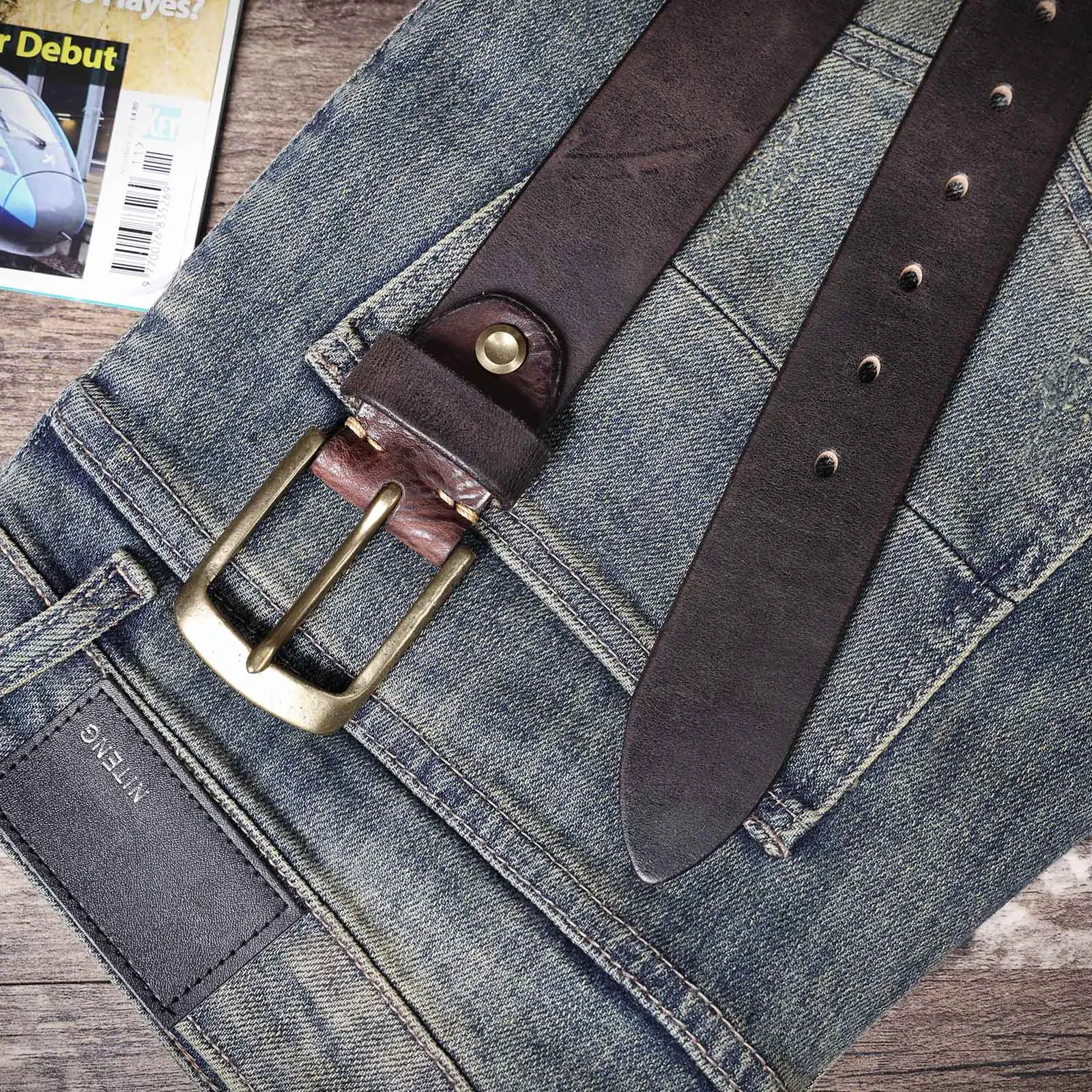 Винтажный мужской ремень из натуральной кожи с однотонной латунной пряжкой, повседневный ремень с пряжкой и подарочной коробкой, утолщенная итальянская воловья кожа