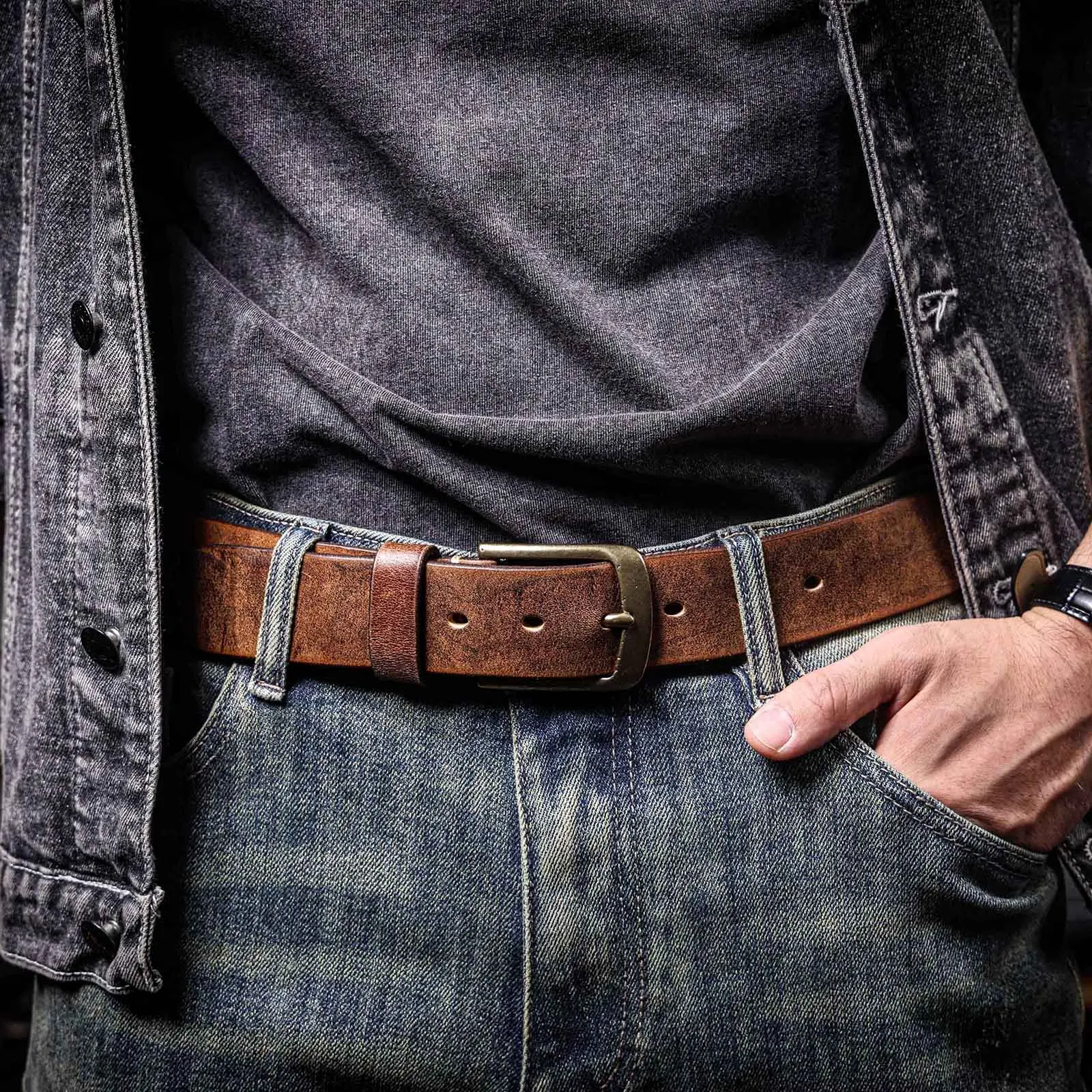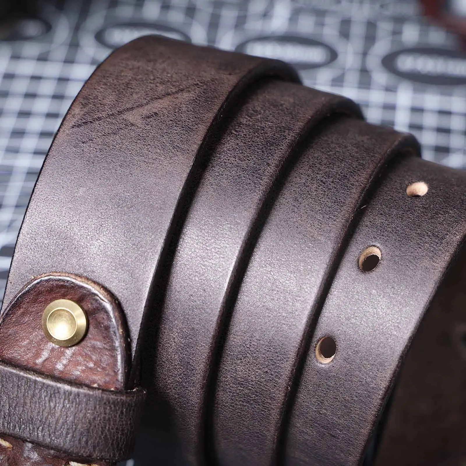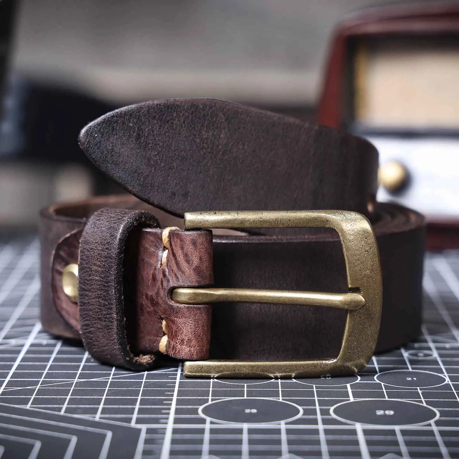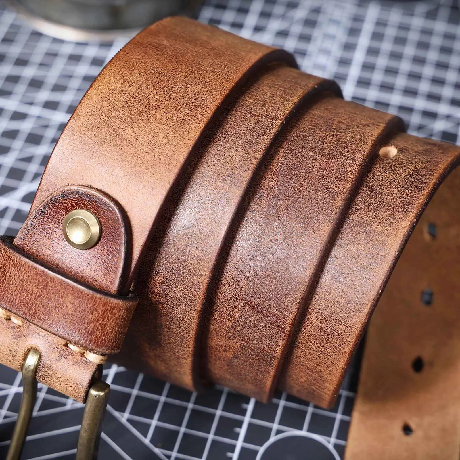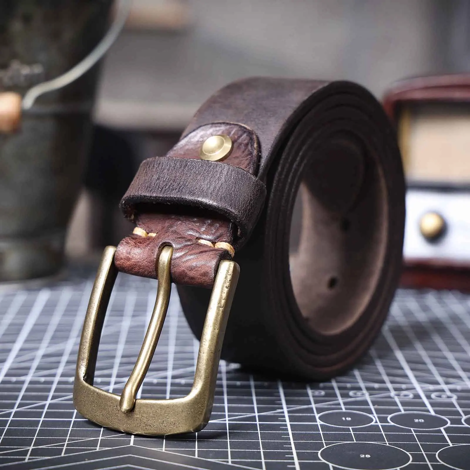 Винтажный мужской ремень из натуральной кожи с однотонной латунной пряжкой, повседневный ремень с пряжкой и подарочной коробкой, утолщенная итальянская воловья кожа