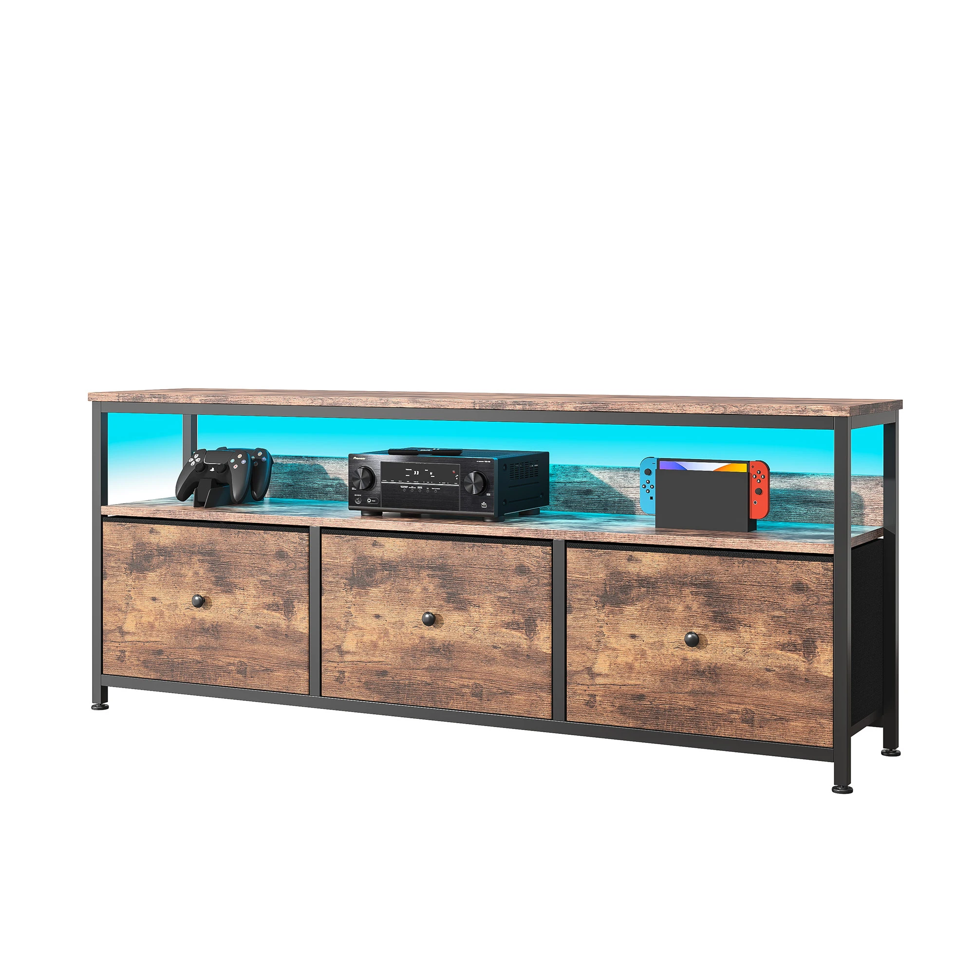 Винтажный шкаф для телевизора Comanlai 108 см с 3 тканевыми ящиками и светодиодной подсветкой, шкаф для хранения в гостиной, подставка для телевизора 108 × 29,8 × 57 см