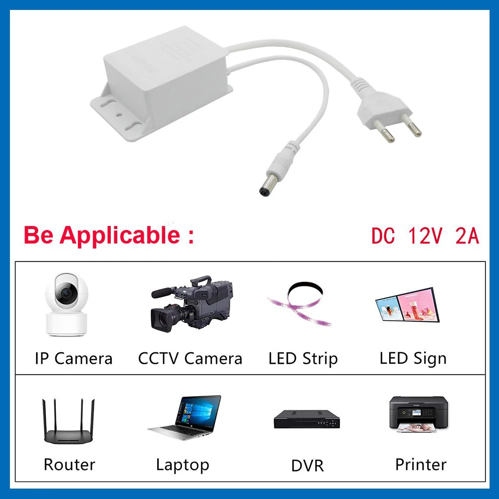 Водонепроницаемый адаптер питания постоянного тока 12 В 2 А ЕС для камер видеонаблюдения AHD камера DVR NVR вход AC100V-240V 5,5 мм * 2,1 мм