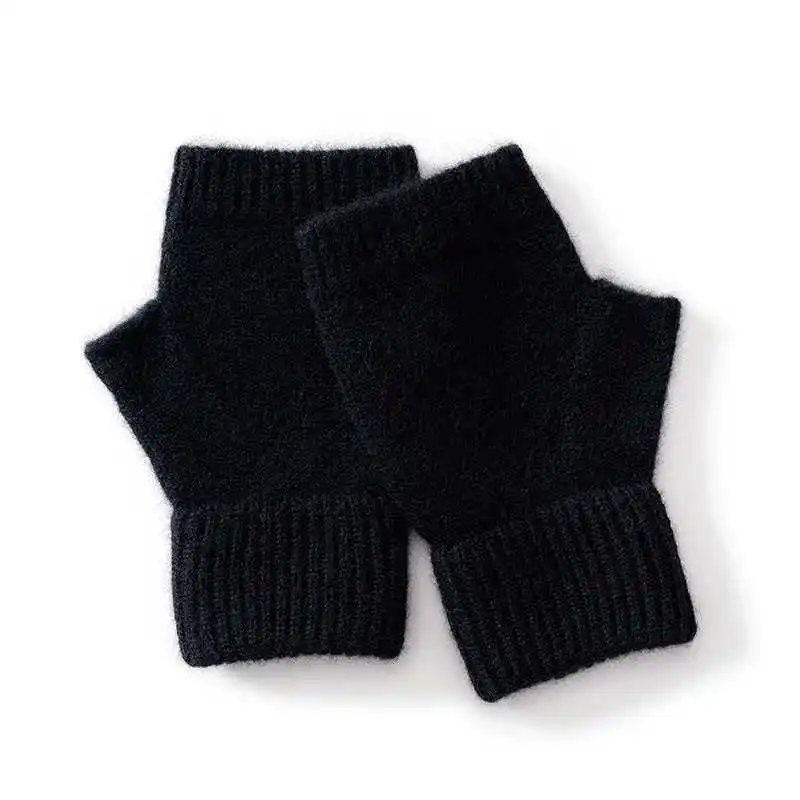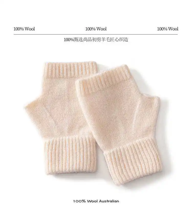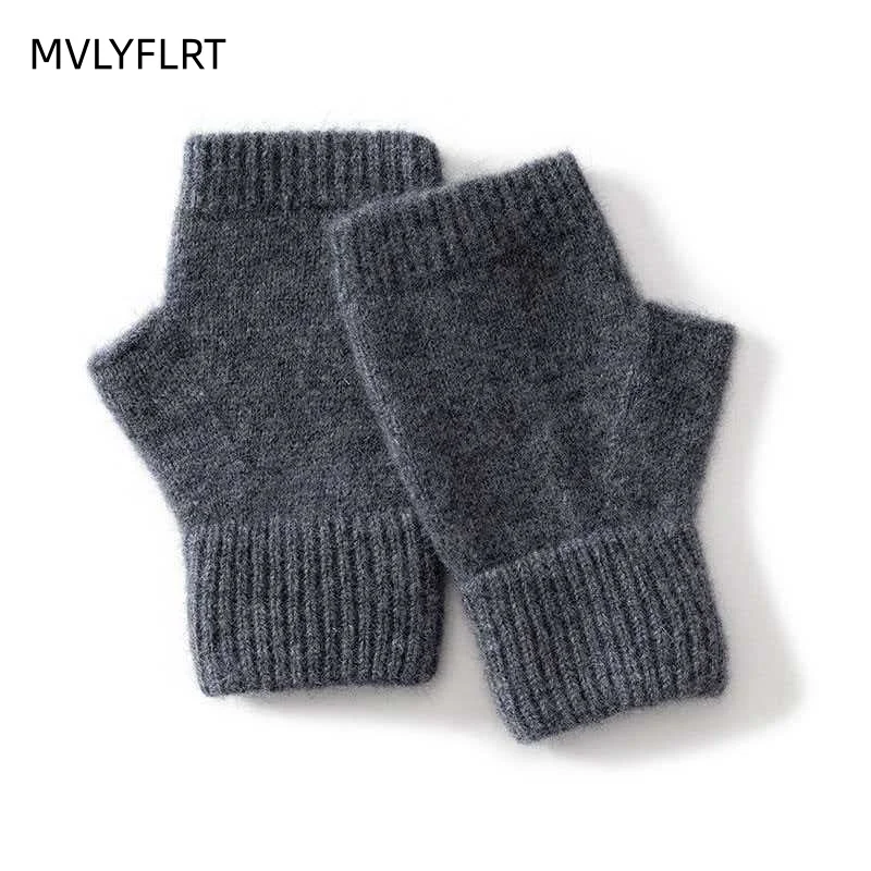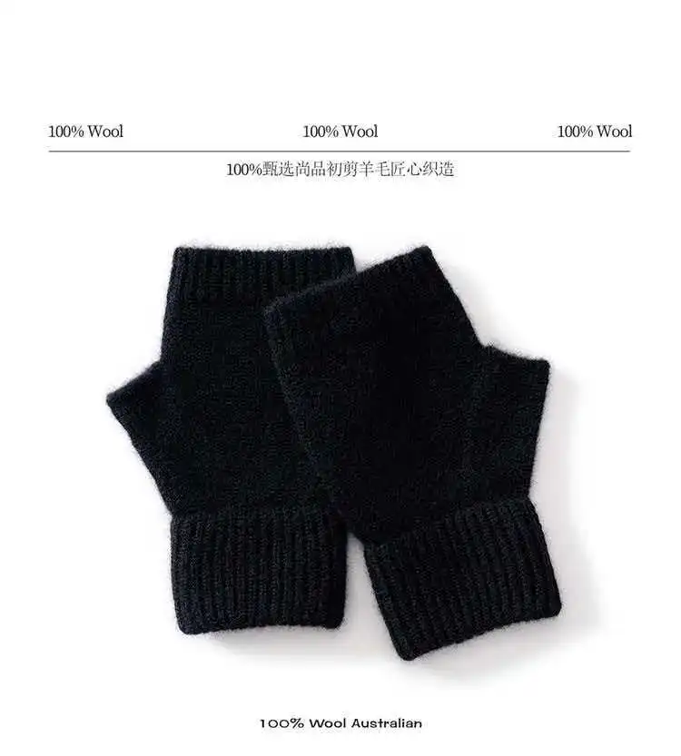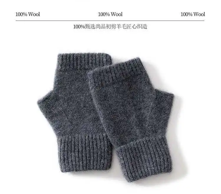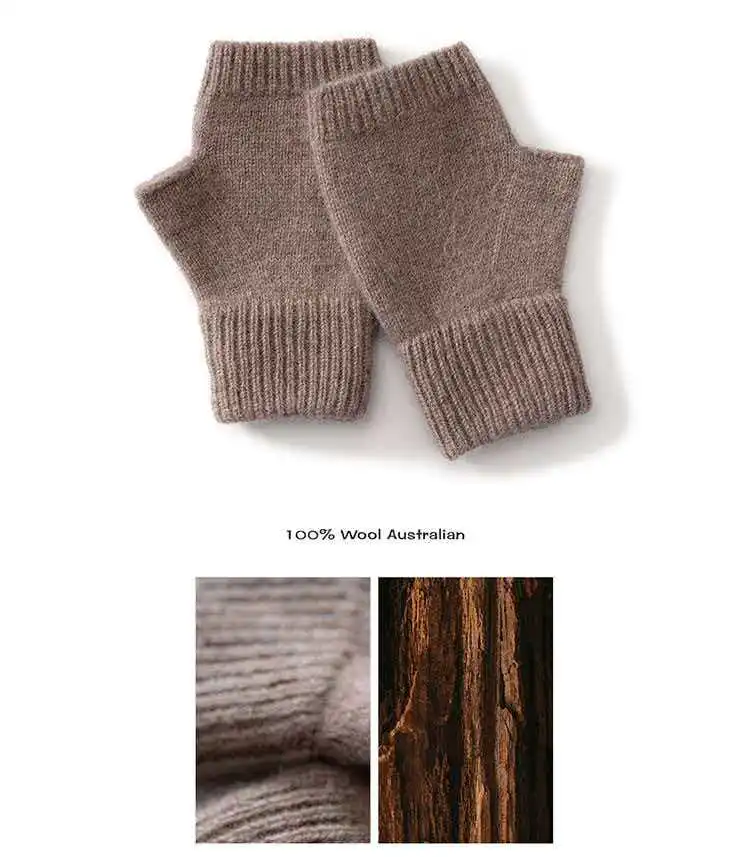 Вязаные перчатки из 100% мериносовой шерсти для мужчин и женщин, зимние теплые варежки без пальцев, унисекс