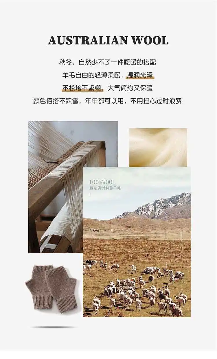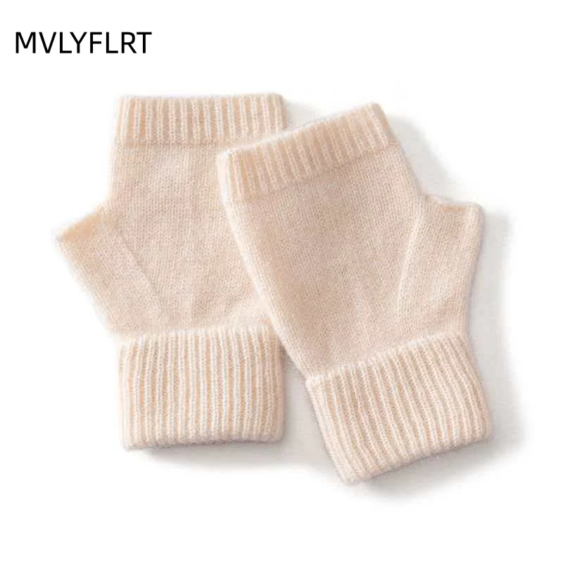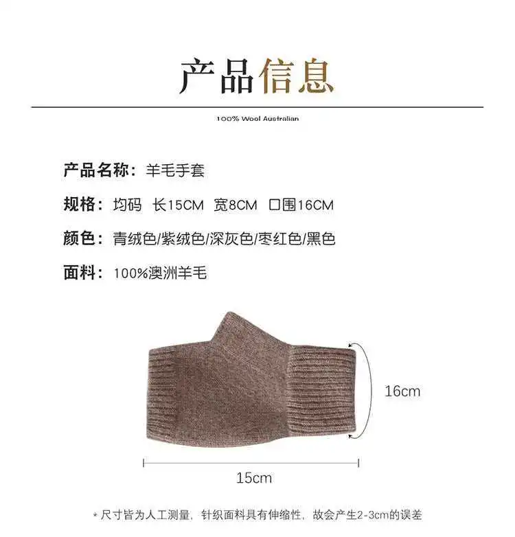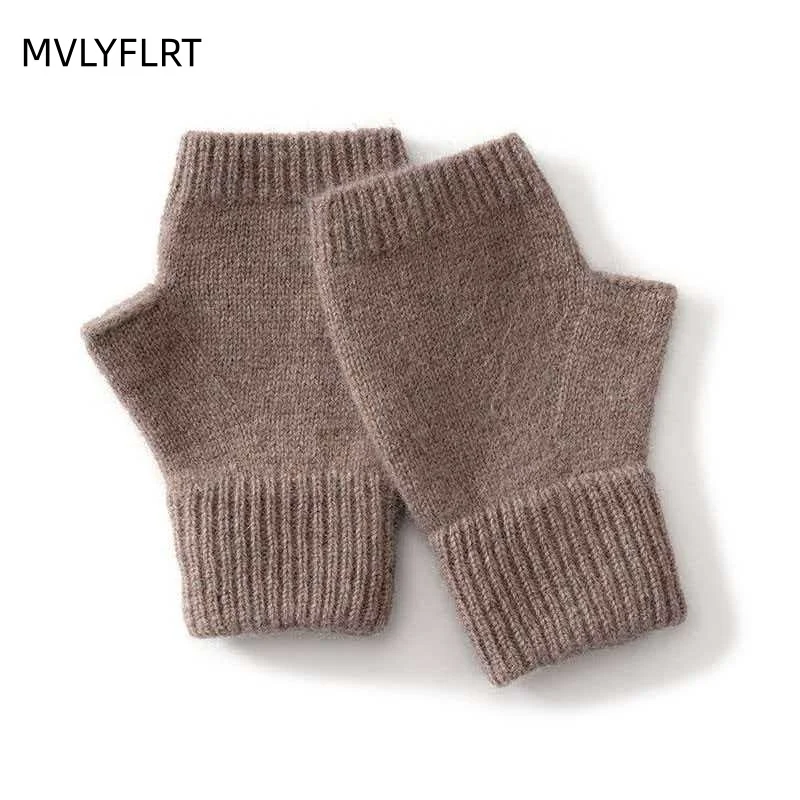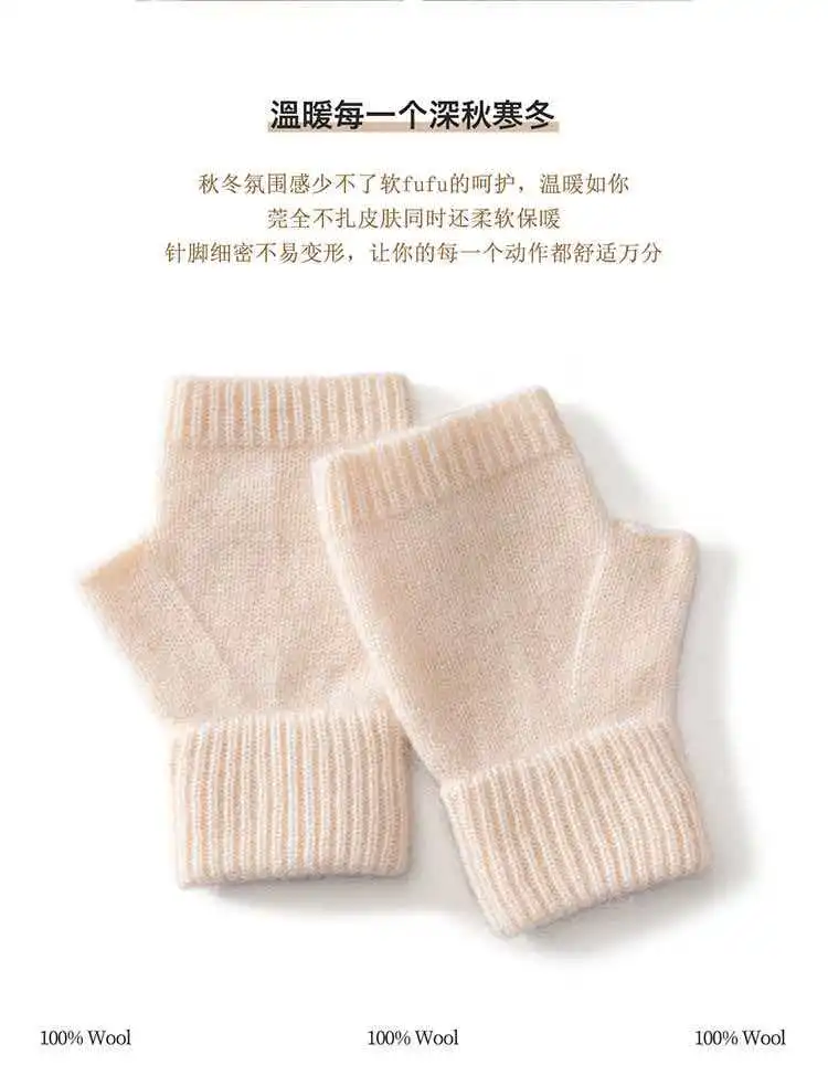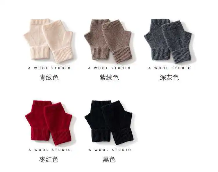 Вязаные перчатки из 100% мериносовой шерсти для мужчин и женщин, зимние теплые варежки без пальцев, унисекс