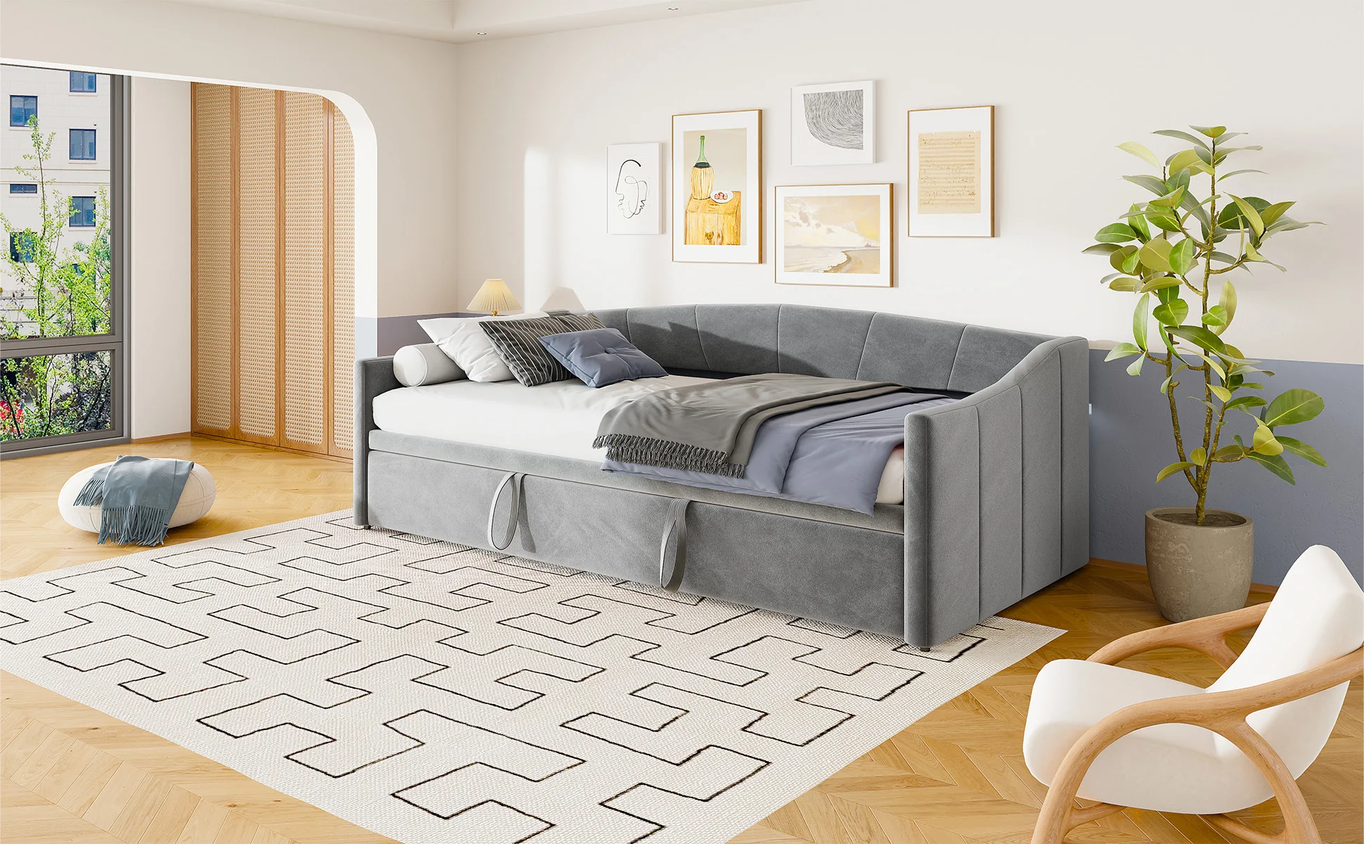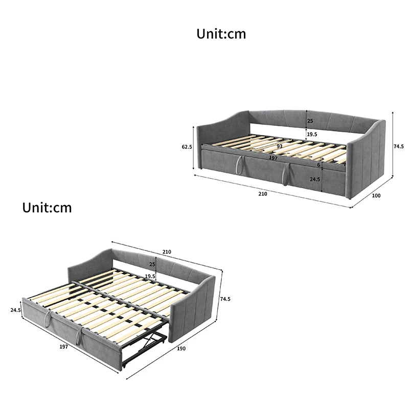Выдвижной диван-кровать Anajqaqia, серая бархатная ткань, многофункциональная кровать 90/180 х 200 см, с решетчатым каркасом