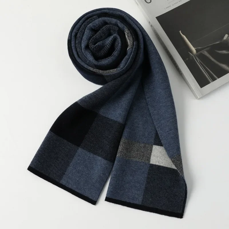 Высококачественный мужской шарф из 100% шерсти, мягкий теплый кашемировый глушитель, мужской осенне-зимний шаль, деловой шарф, рождественский подарок для мальчика