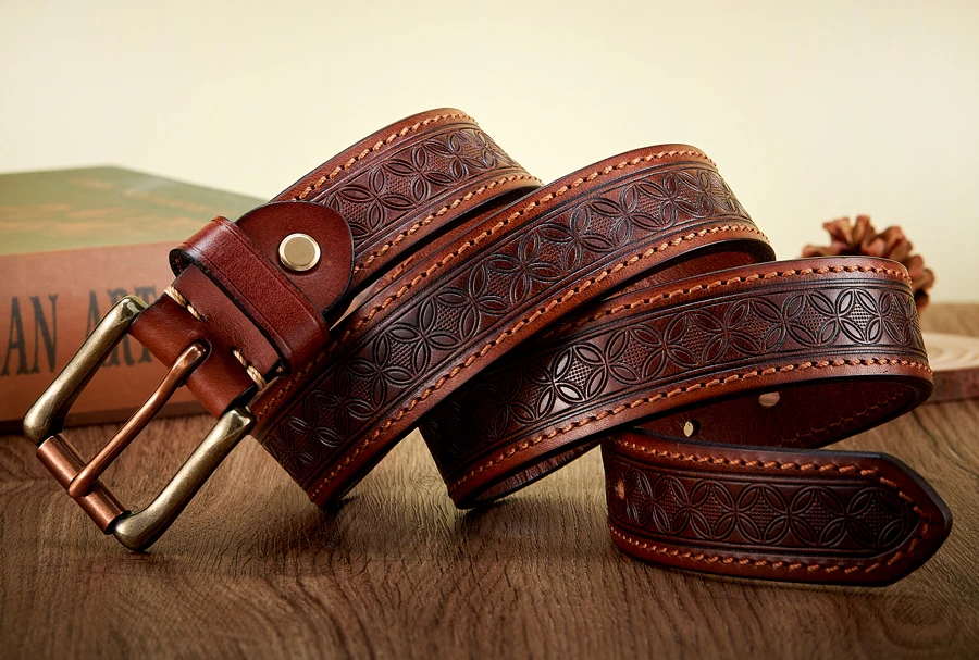 Высококачественный ремень с тиснением в стиле вестерн, ковбойский латунный ремень с пряжкой, натуральная толстая натуральная кожа, дизайнерский мужской ремень, джинсовые ремни в стиле панк для мужчин
