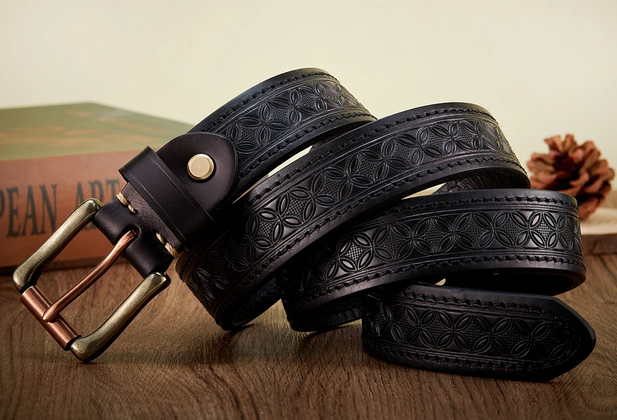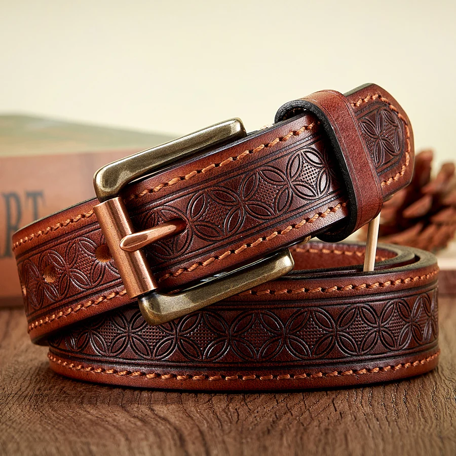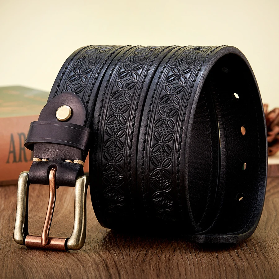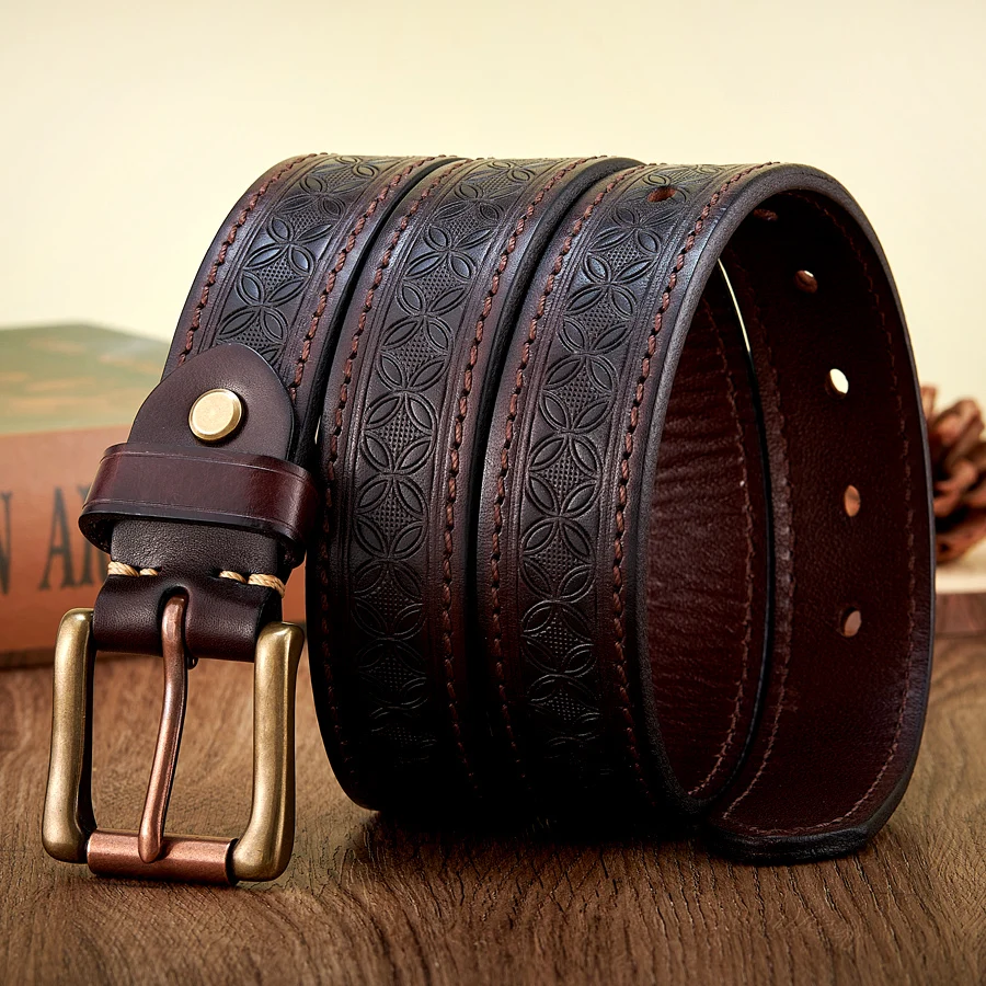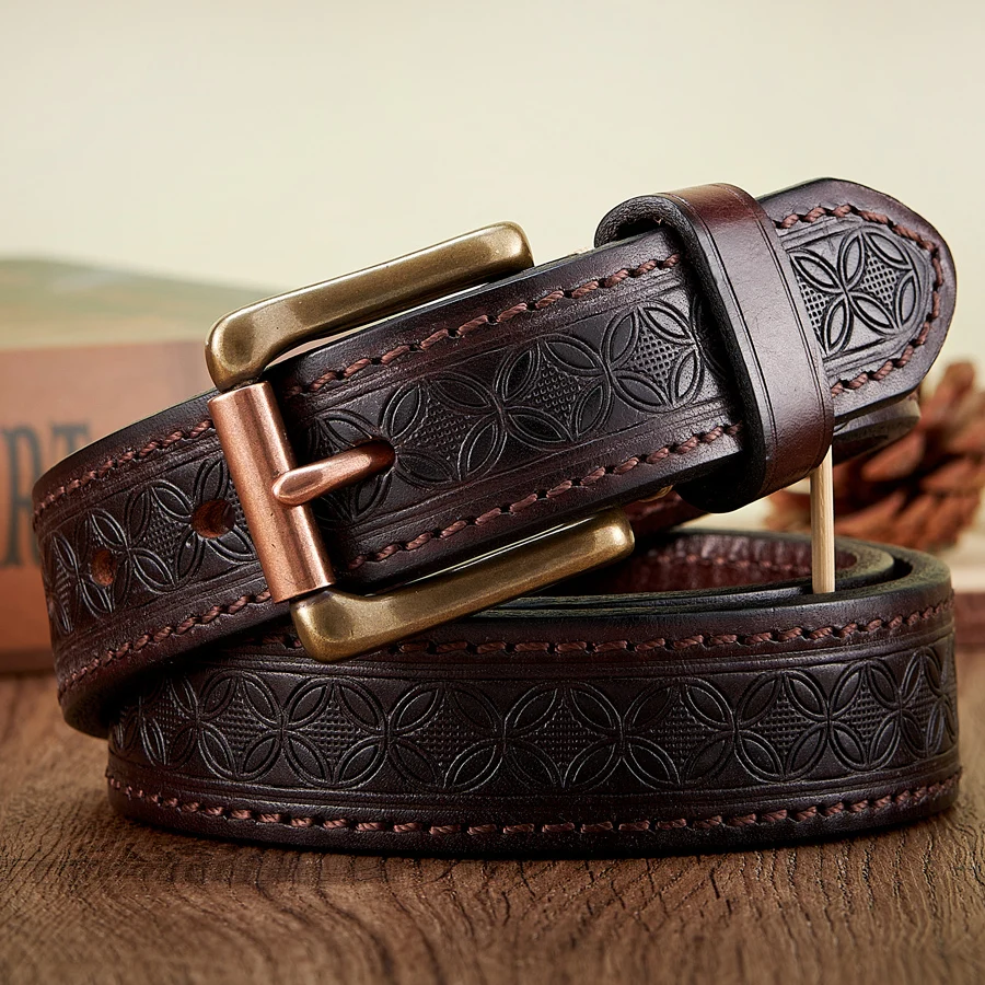 Высококачественный ремень с тиснением в стиле вестерн, ковбойский латунный ремень с пряжкой, натуральная толстая натуральная кожа, дизайнерский мужской ремень, джинсовые ремни в стиле панк для мужчин