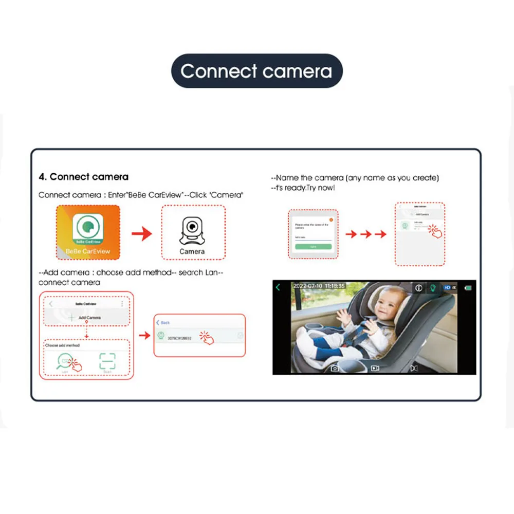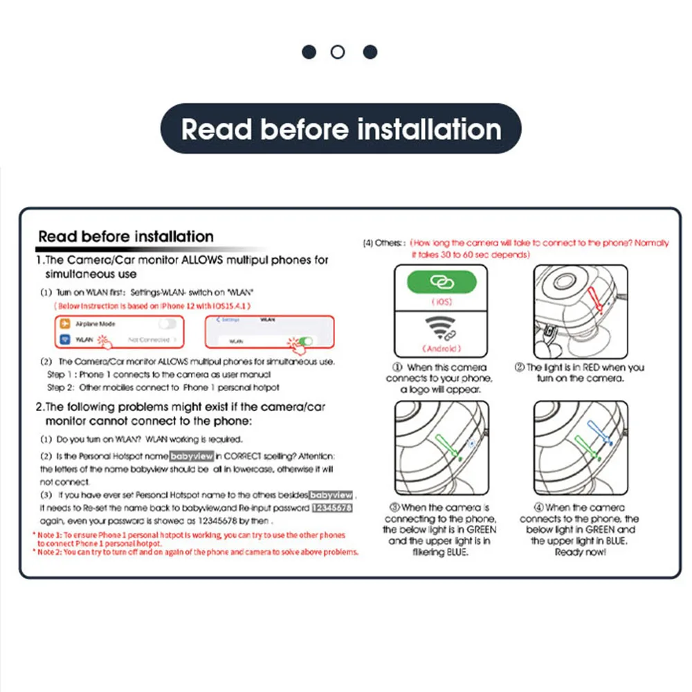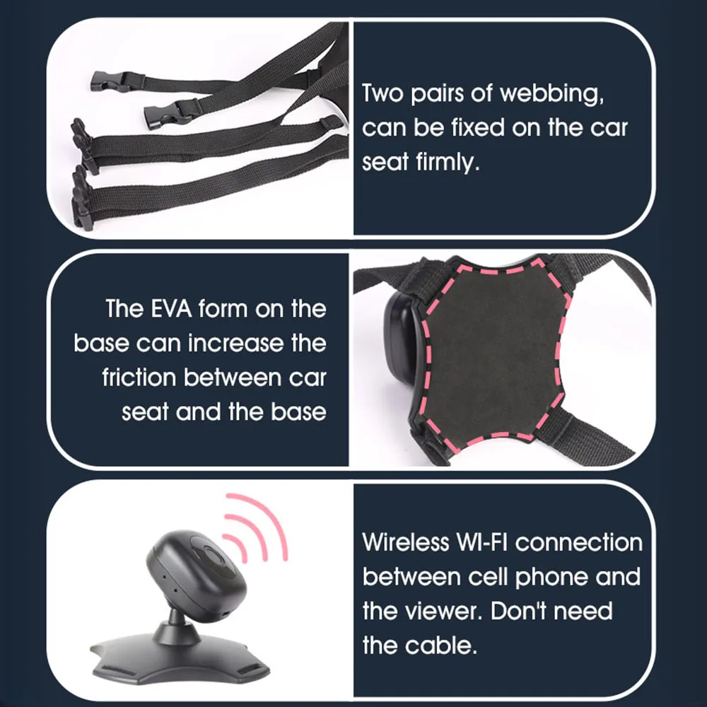 Беспроводная камера радионяни для автомобиля:Беспокойство о ребенке на автокресле, обращенном сзади, во время вождения? Тогда вам действительно нужна эта беспроводная автомобильная камера для радионяни. Подключение Wi-Fi и работа с системой iOS и Android, вы можете легко наблюдать за ребенком через свой мобильный телефон. Незаменим для безопасного вождения.