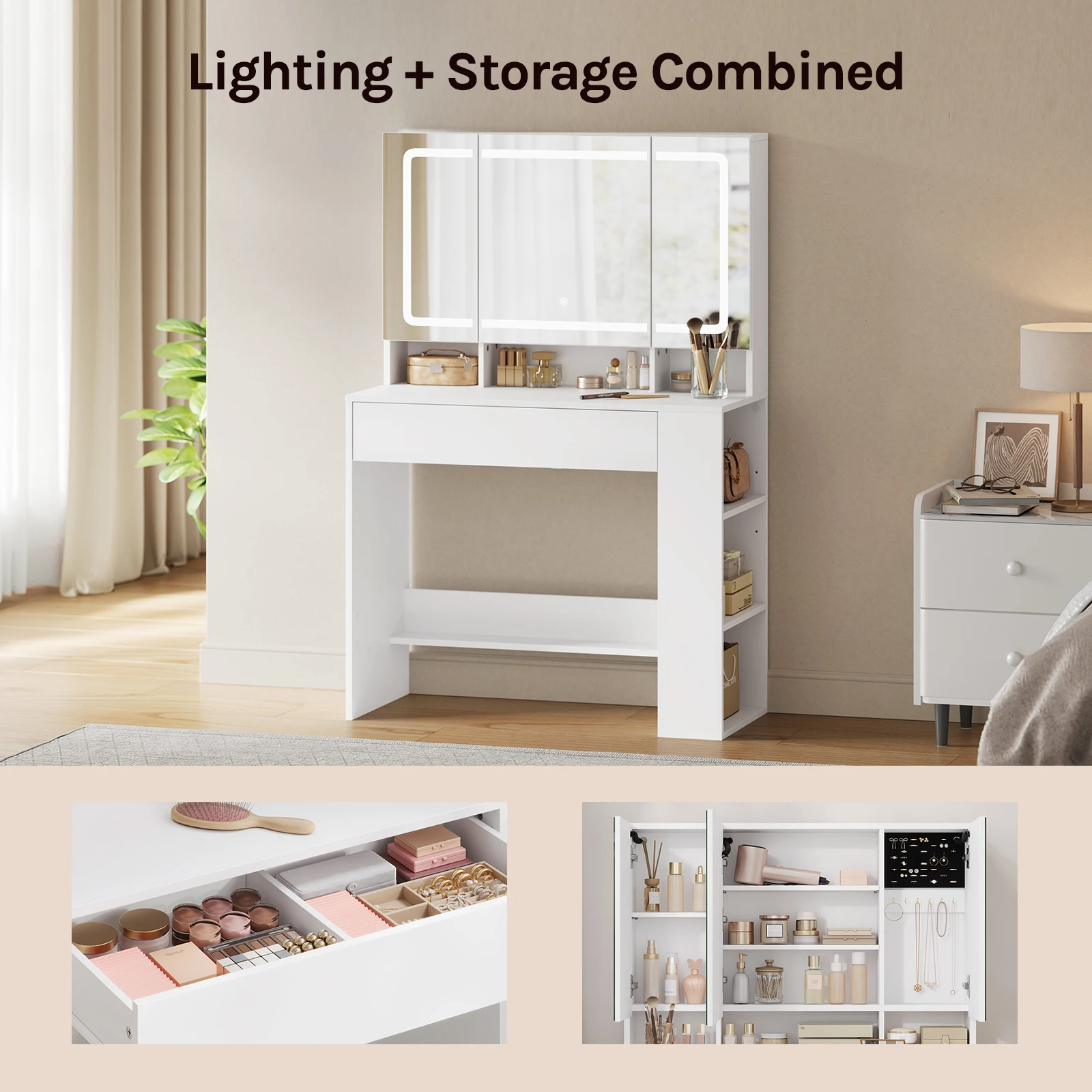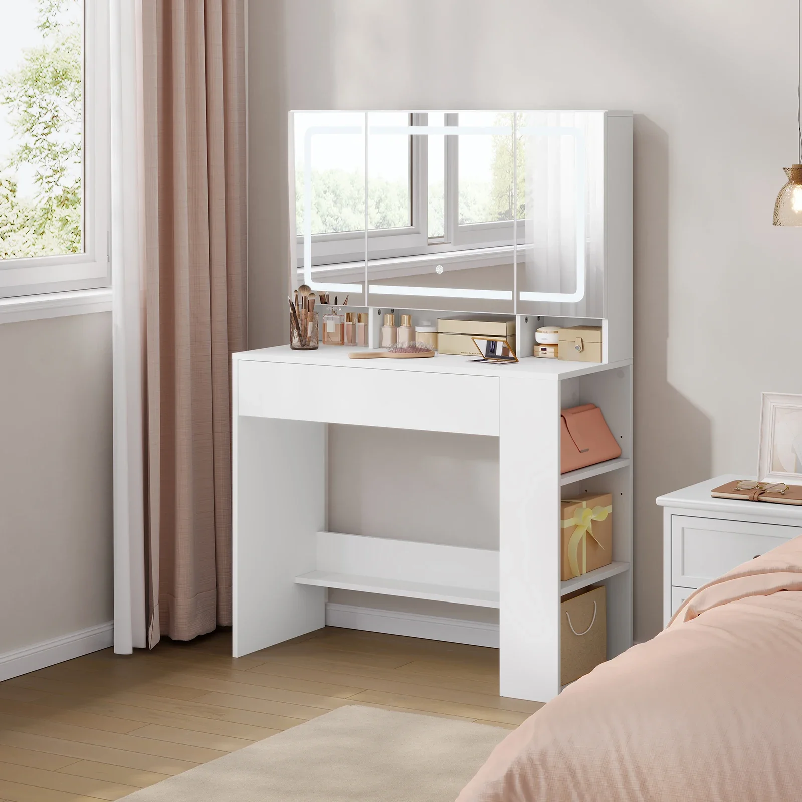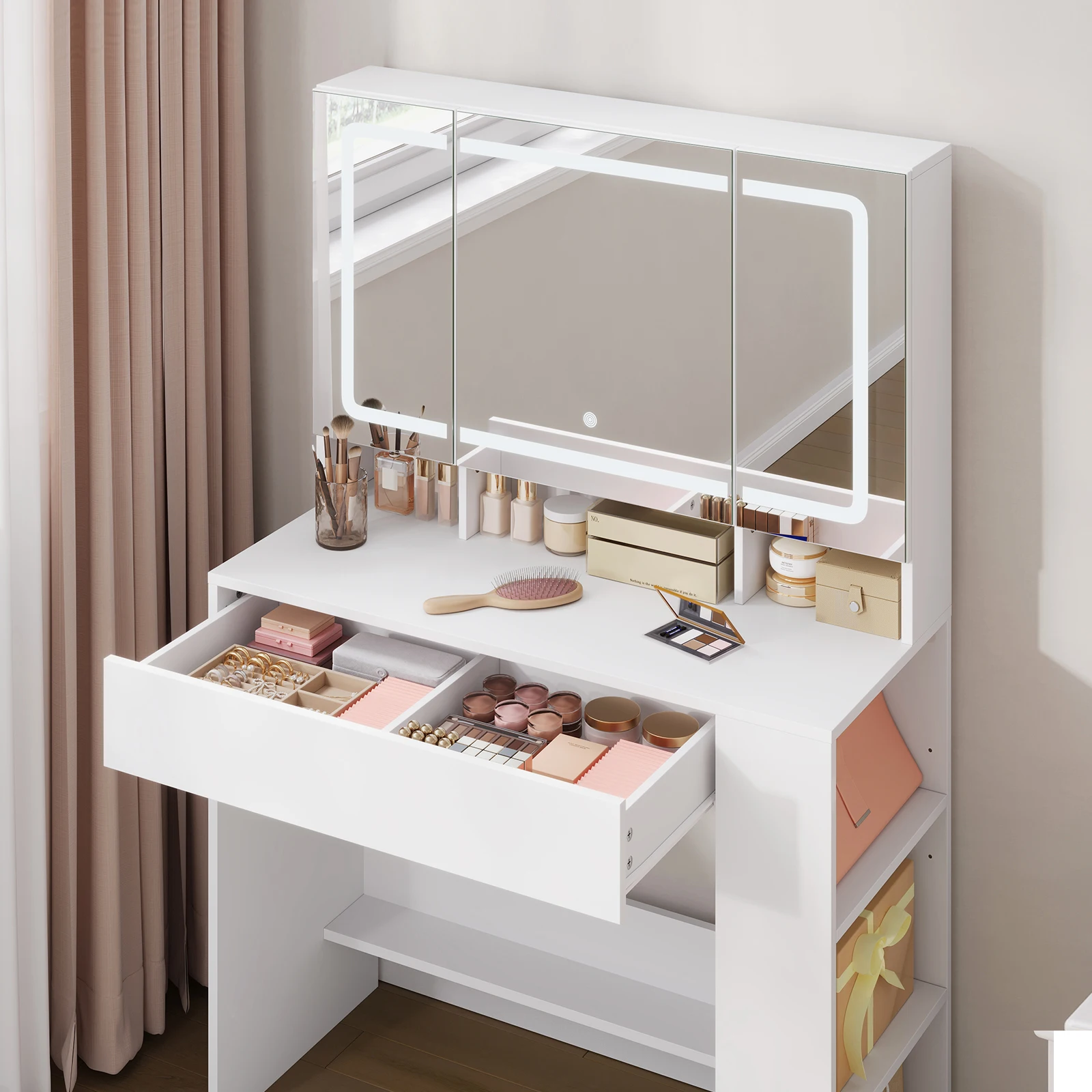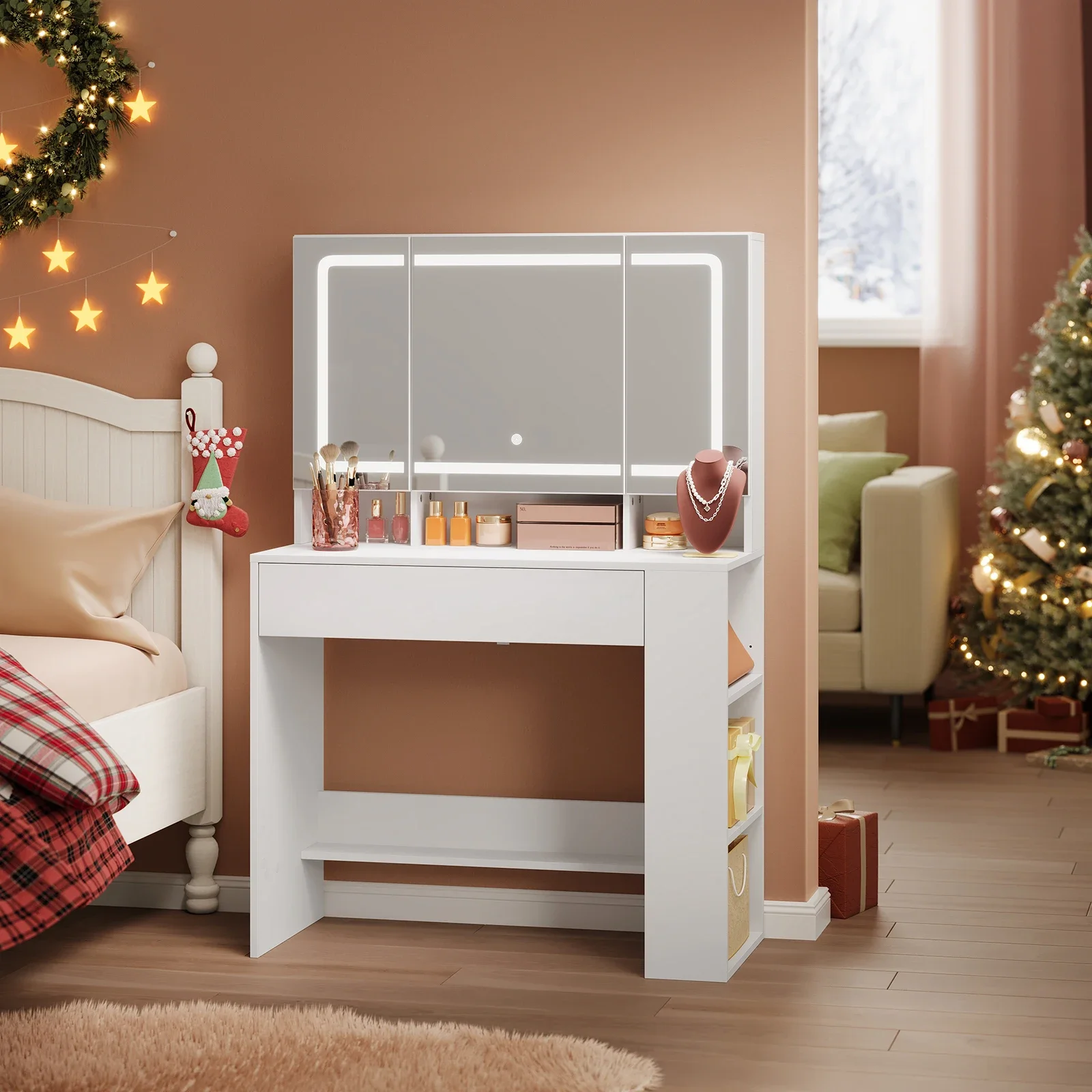 WOLTU 1 компл. туалетный столик для макияжа с регулируемым светодиодным зеркалом, 3-х уровневые боковые полки, комод для спальни, органайзер для ювелирных изделий