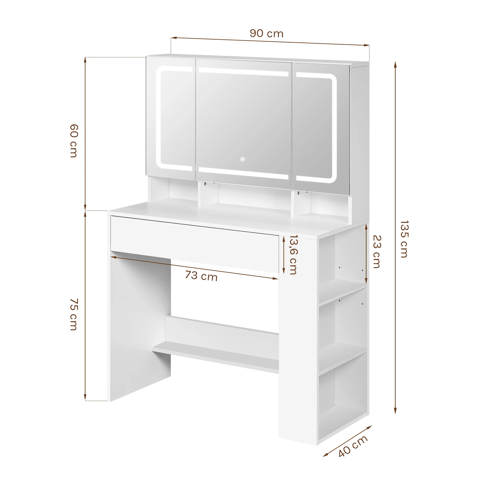 • Размер туалетного столика: 90x40x135 см (ШxГxВ).