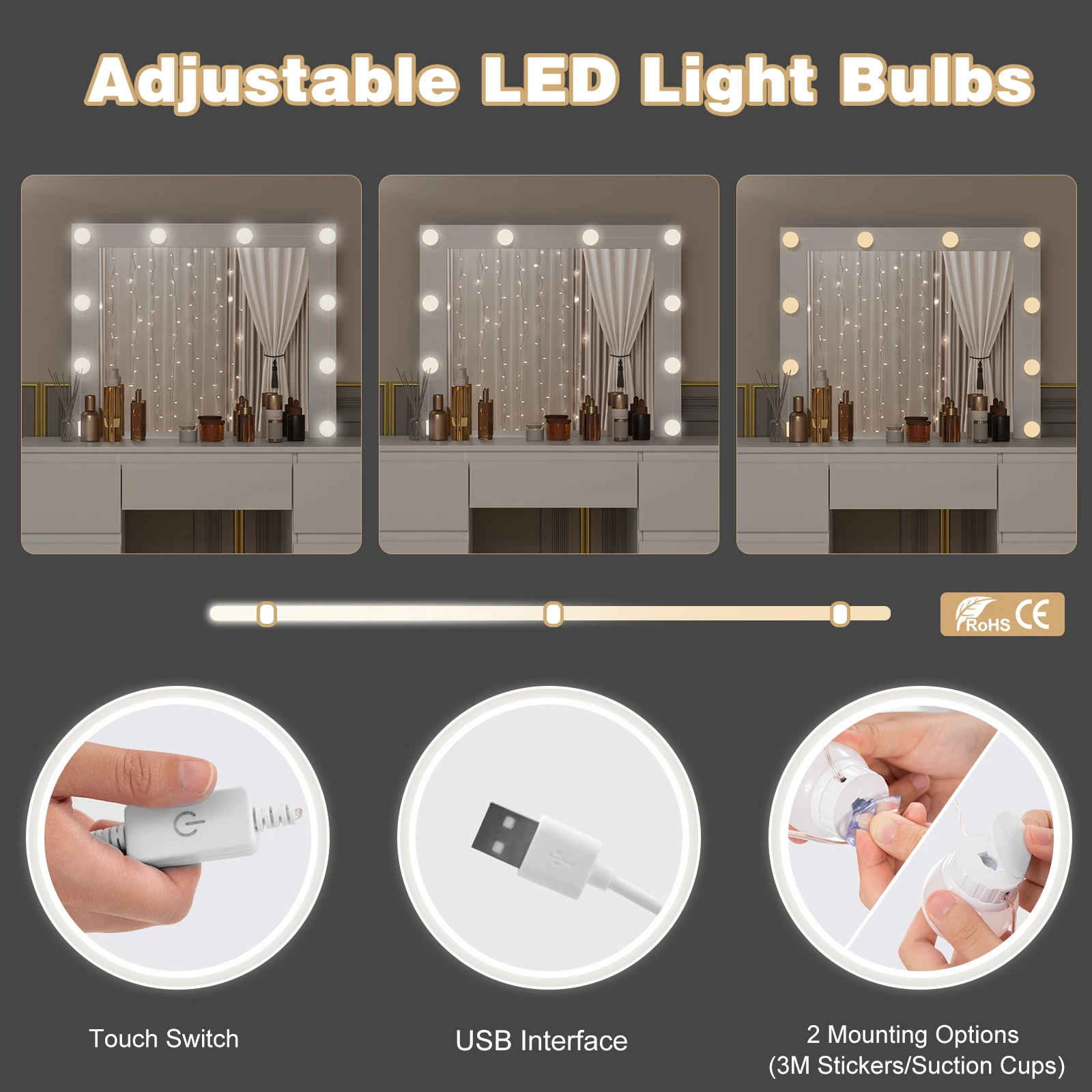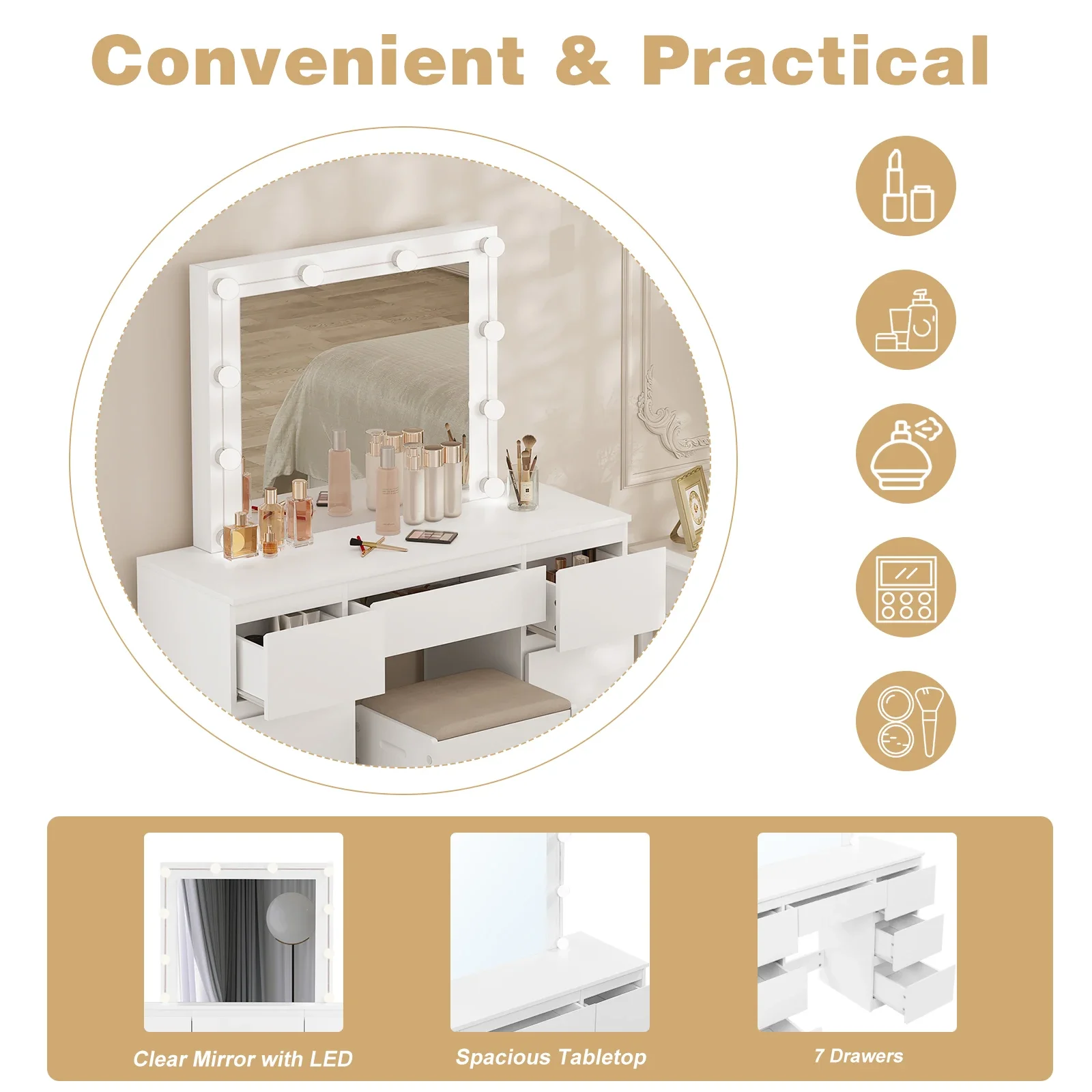 WOLTU 1 компл. туалетный столик со светодиодной подсветкой, косметический столик с регулируемой яркостью, большое зеркало, 7 ящиков для спальни