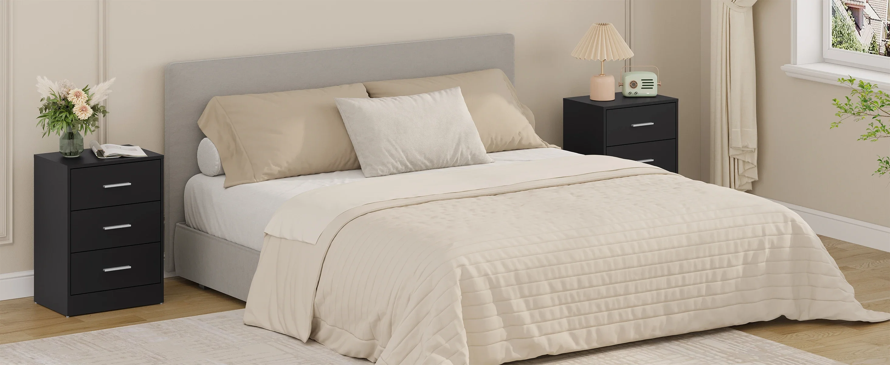 • Достаточно места для хранения вещей: прикроватная тумбочка имеет широкую столешницу и 3 больших ящика, которые обеспечивают достаточно места для хранения вещей, чтобы легко организовать чтение на кровати, электронные устройства и другие повседневные вещи и сохранить все в порядке.
