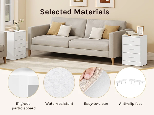 • Легко собрать: с помощью прилагаемых иллюстрированных инструкций, инструментов, пронумерованных деталей и маркированных аксессуаров вы можете легко завершить сборку этой прикроватной тумбочки с тремя ящиками.