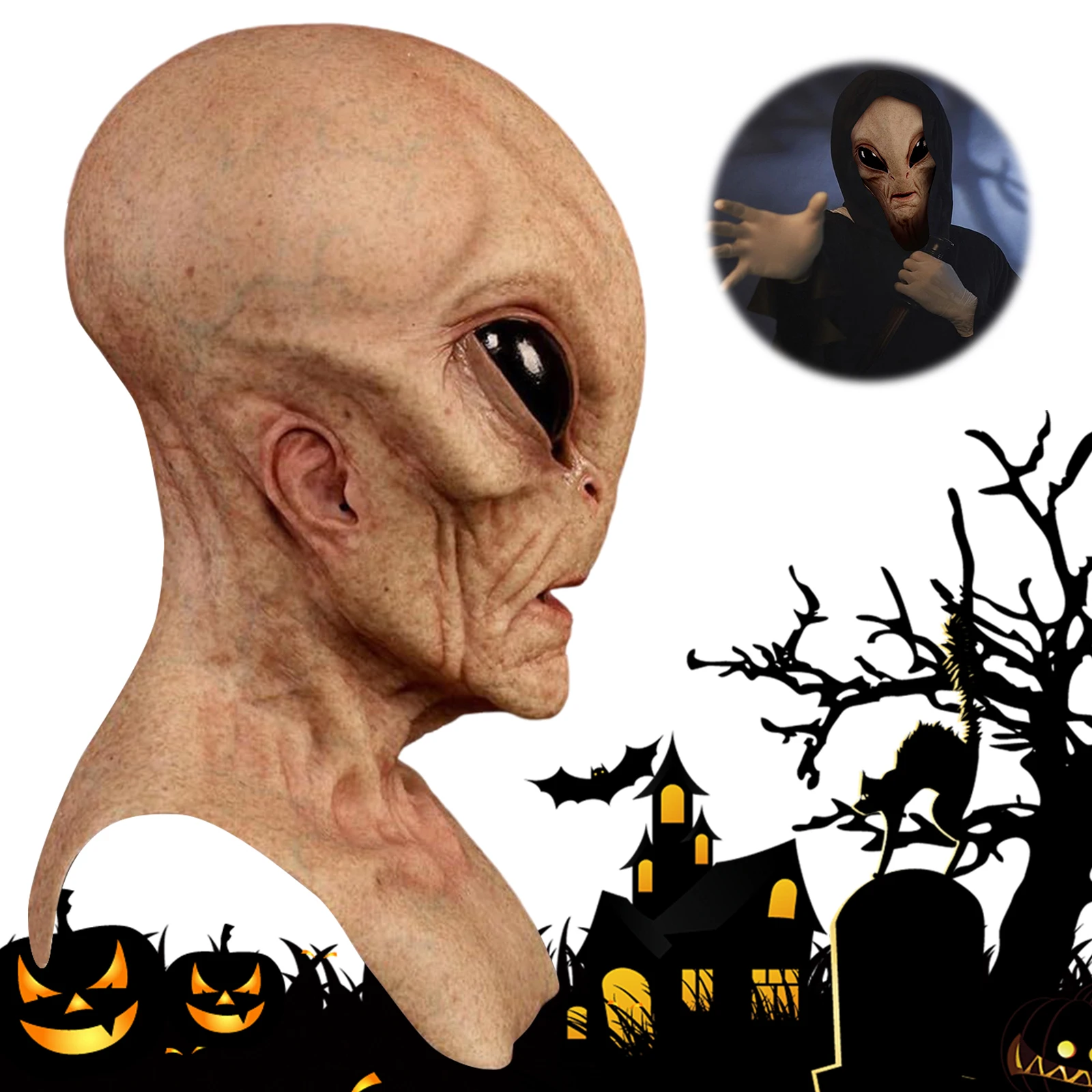 1.2025 Latest Realistic Alien Look: Stand out with an alien funny mask crafted from premium latex for detail and realism. The striking design captures the essence of extraterrestrial mystery, delivering a powerful visual impact at any event.