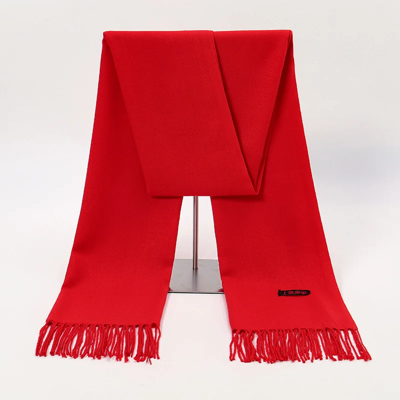 Женский зимний красный шарф, уличный теплый шарф из пашмины, модный угловой маркер, тесьма, толстый глушитель, длинная шаль для банкетной вечеринки