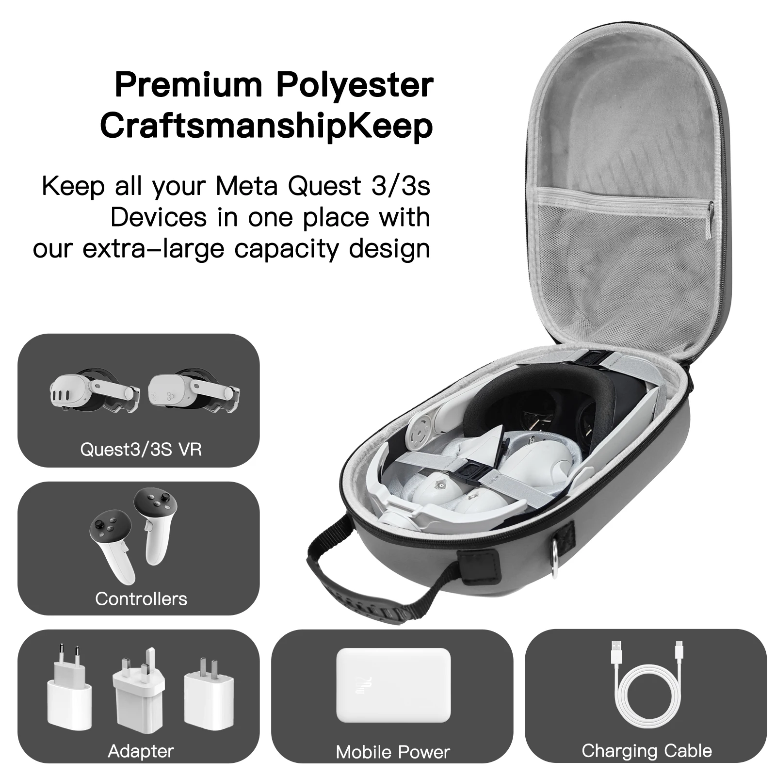 Жесткий чехол для переноски, устойчивая к падению портативная сумка для хранения, дорожная сумка для Meta Quest 3/3S, аксессуары для контроллера гарнитуры VR