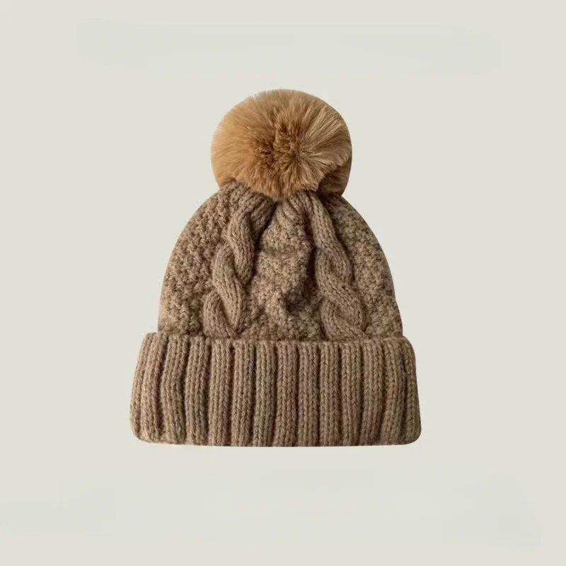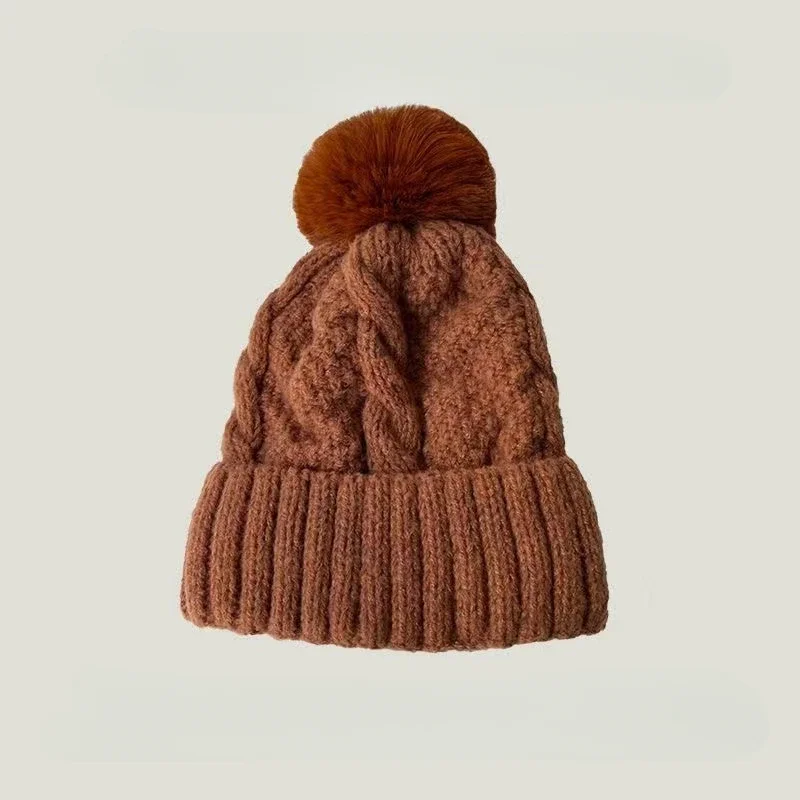 Зимние вязаные шапки, теплые меховые помпоны, толстые плюшевые шапки, однотонные женские универсальные лыжные шапки с черепами, бархатная шапка
