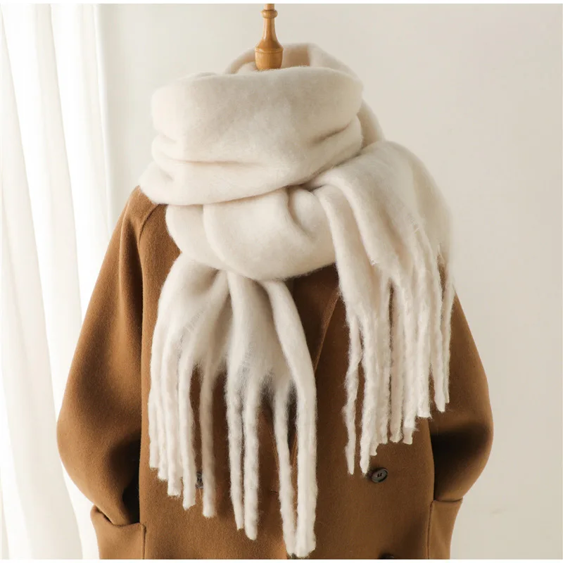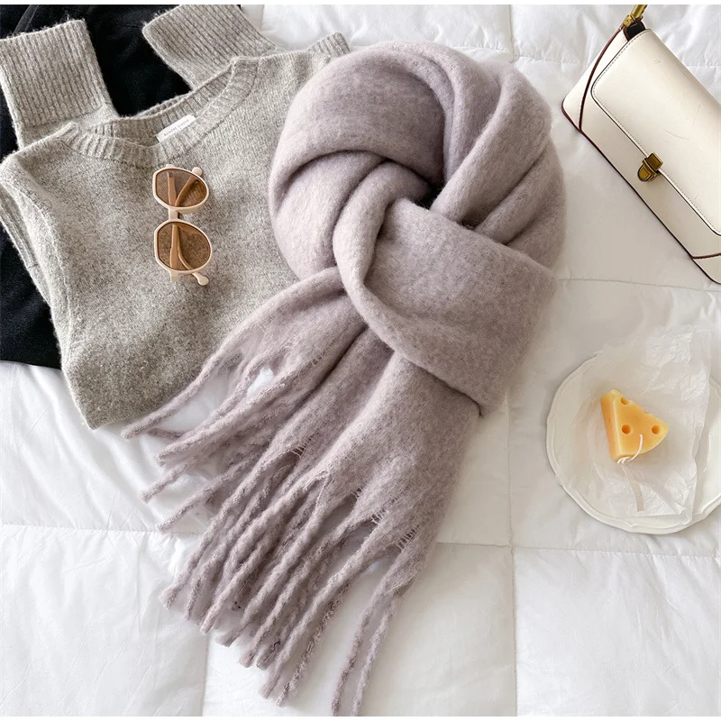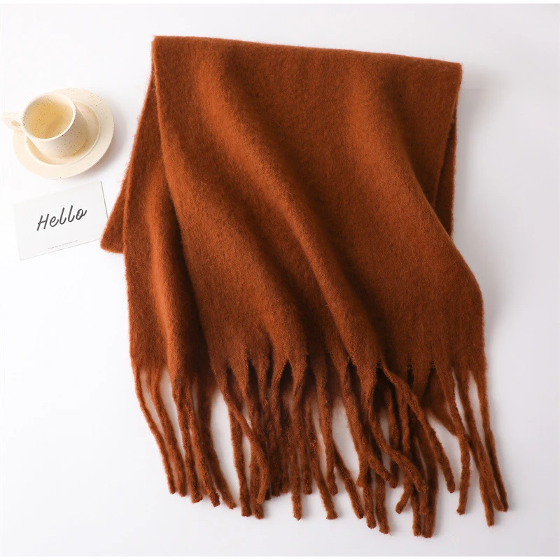 Зимний шарф для женщин, кашемировое теплое однотонное одеяло из пашмины, женское толстое мягкое шаль Bufanda с большими кисточками, длинное пончо Echarpe